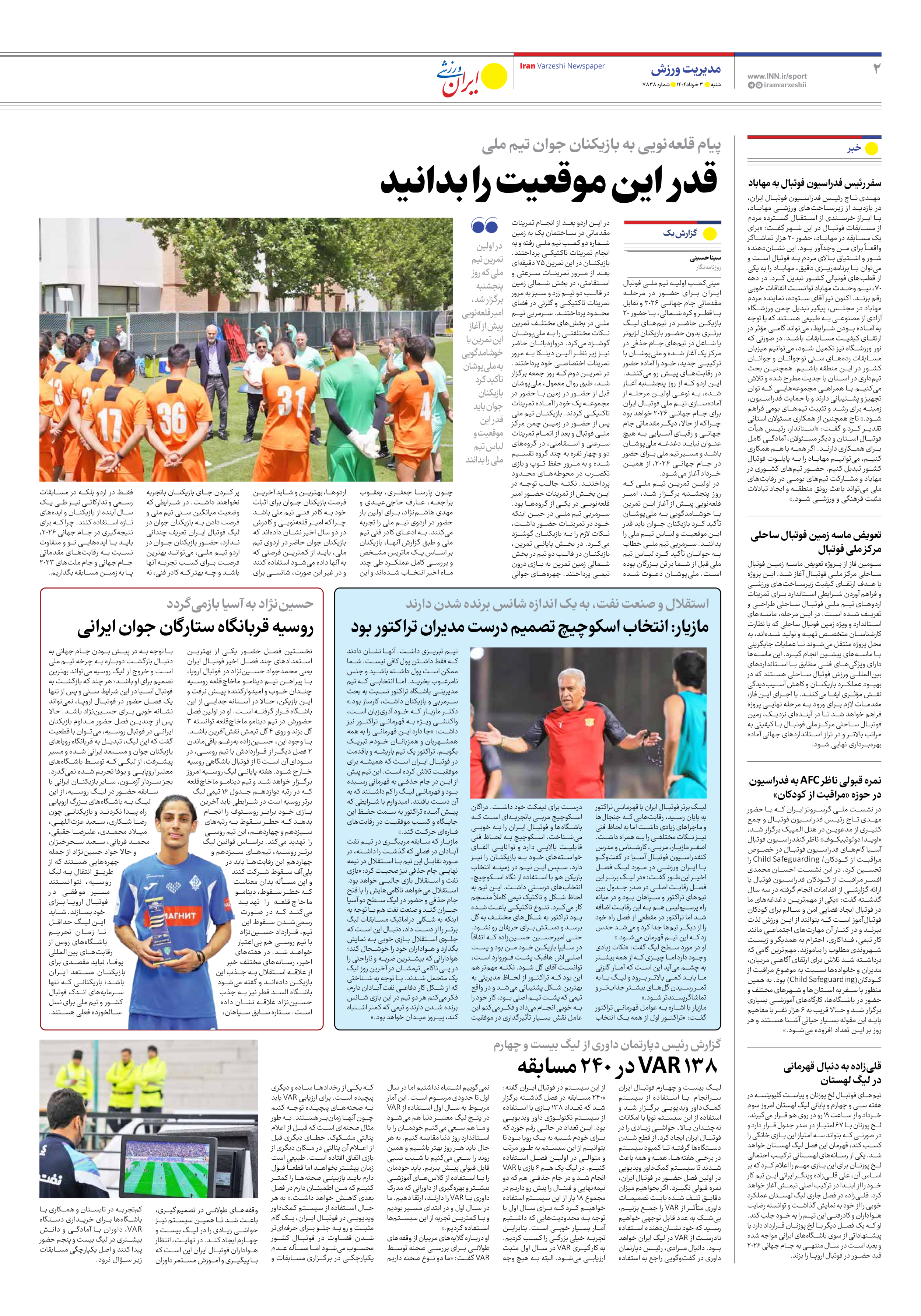 روزنامه ایران ورزشی - شماره هفت هزار و هشتصد و سی و هشت - ۰۳ خرداد ۱۴۰۴ - صفحه ۲