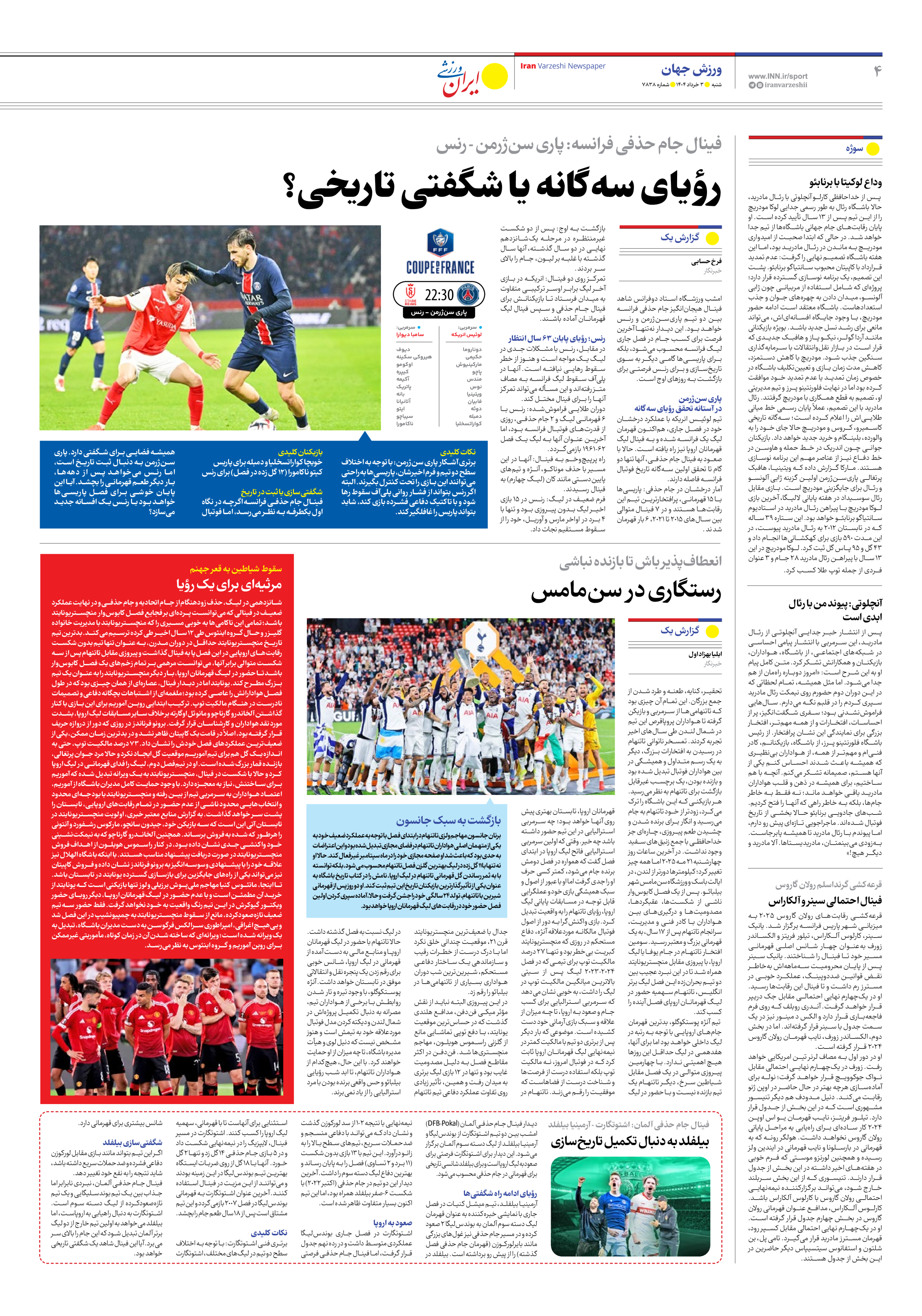 روزنامه ایران ورزشی - شماره هفت هزار و هشتصد و سی و هشت - ۰۳ خرداد ۱۴۰۴ - صفحه ۴