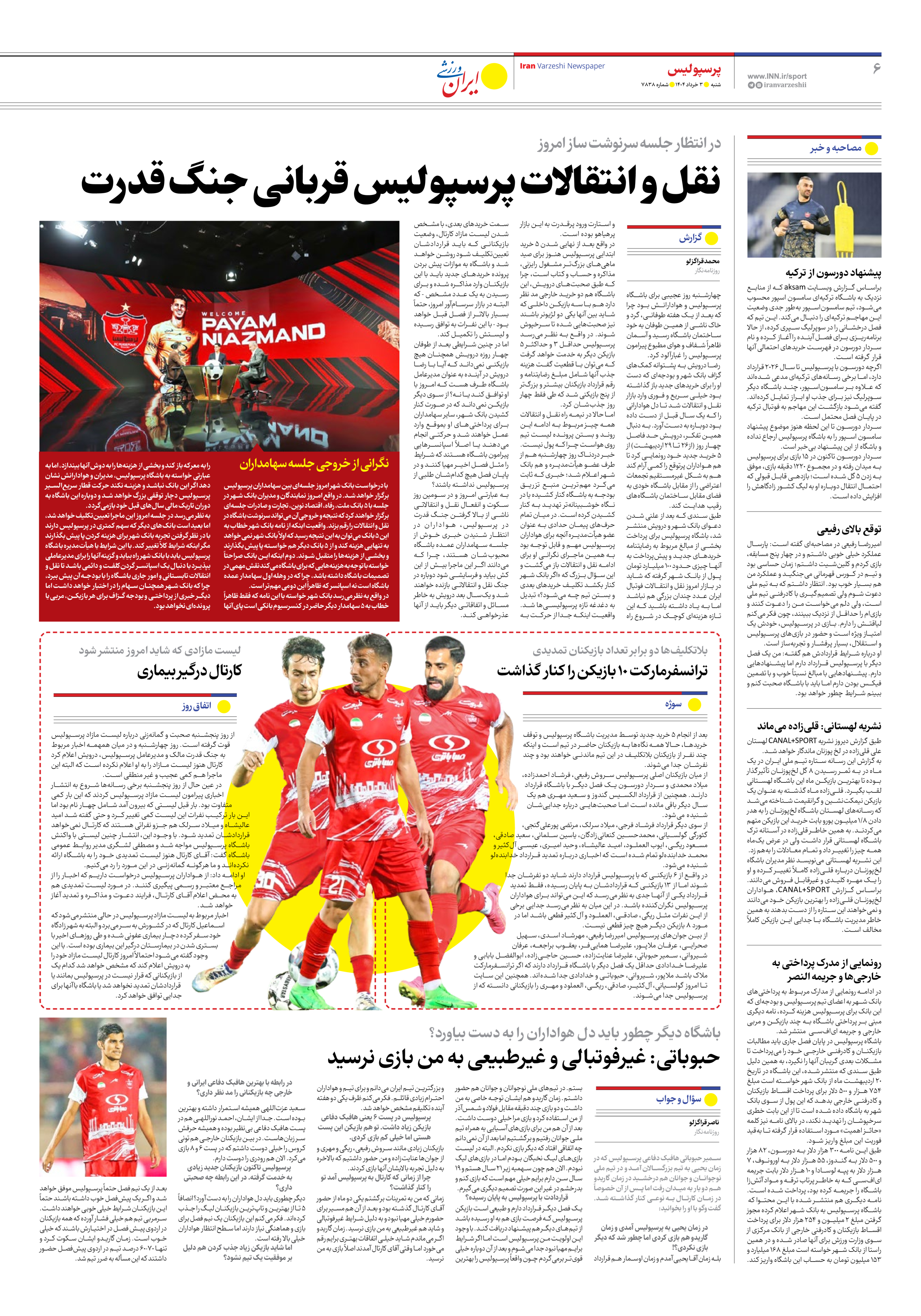 روزنامه ایران ورزشی - شماره هفت هزار و هشتصد و سی و هشت - ۰۳ خرداد ۱۴۰۴ - صفحه ۶