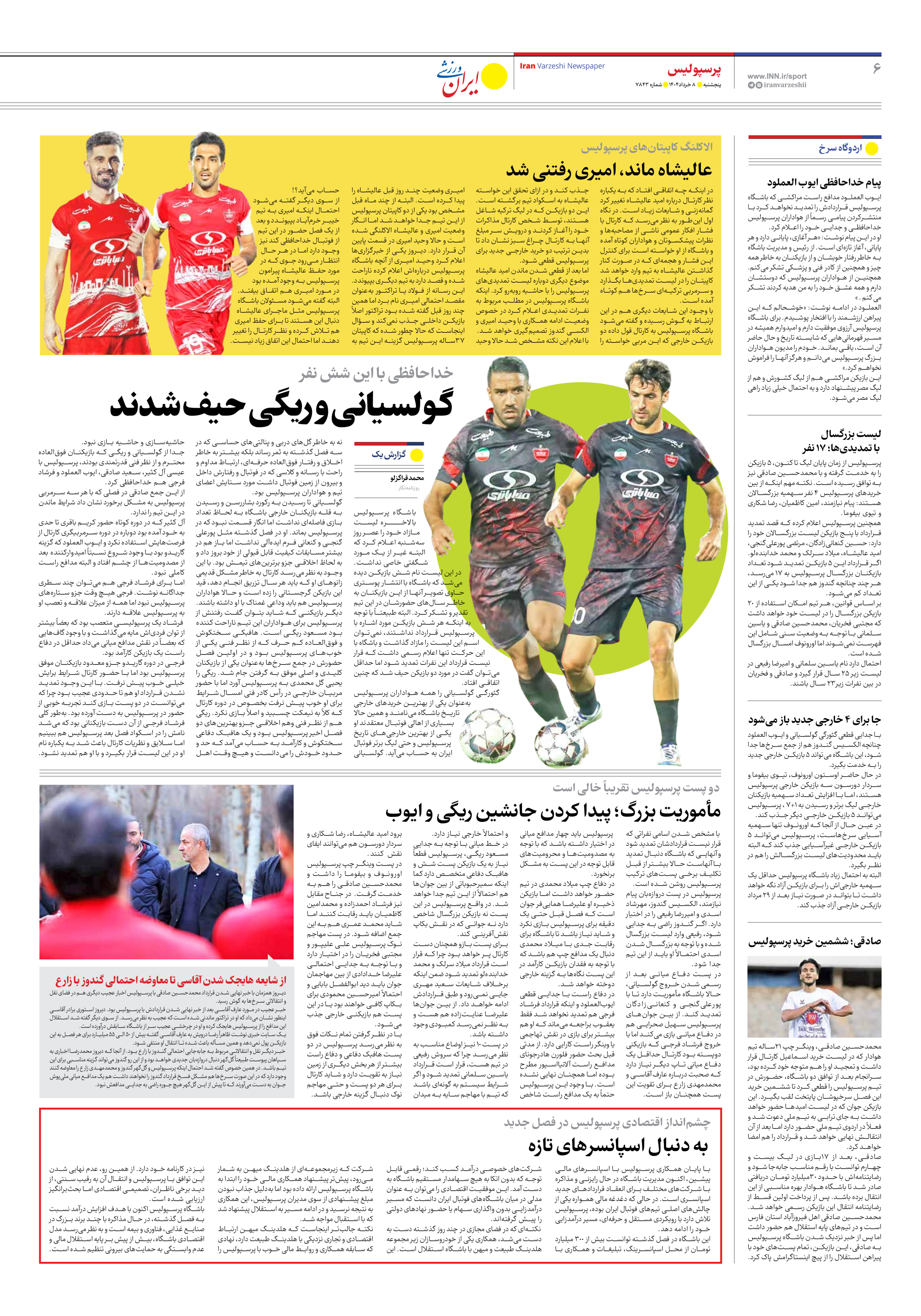 روزنامه ایران ورزشی - شماره هفت هزار و هشتصد و چهل و سه - ۰۸ خرداد ۱۴۰۴ - صفحه ۶
