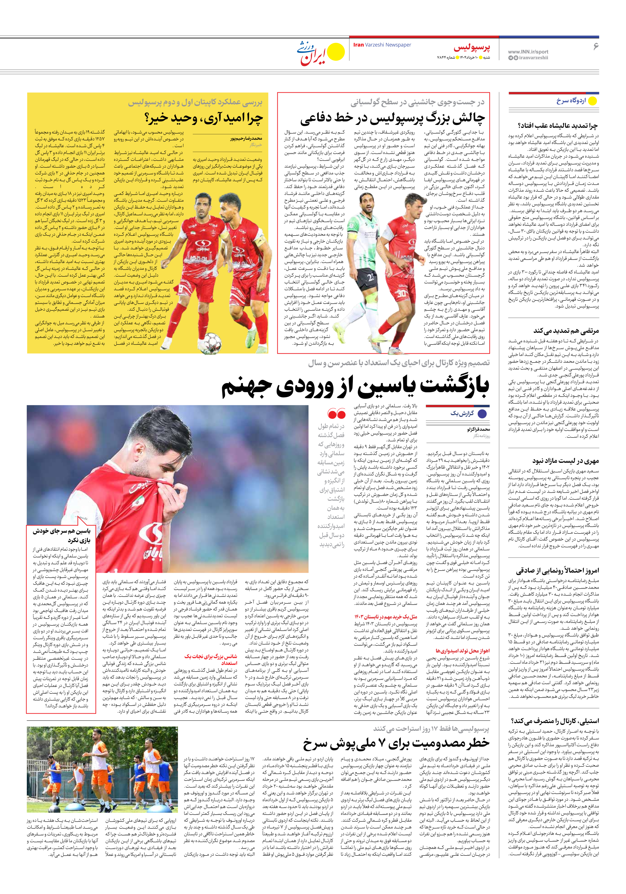 روزنامه ایران ورزشی - شماره هفت هزار و هشتصد و چهل و چهار - ۱۰ خرداد ۱۴۰۴ - صفحه ۶