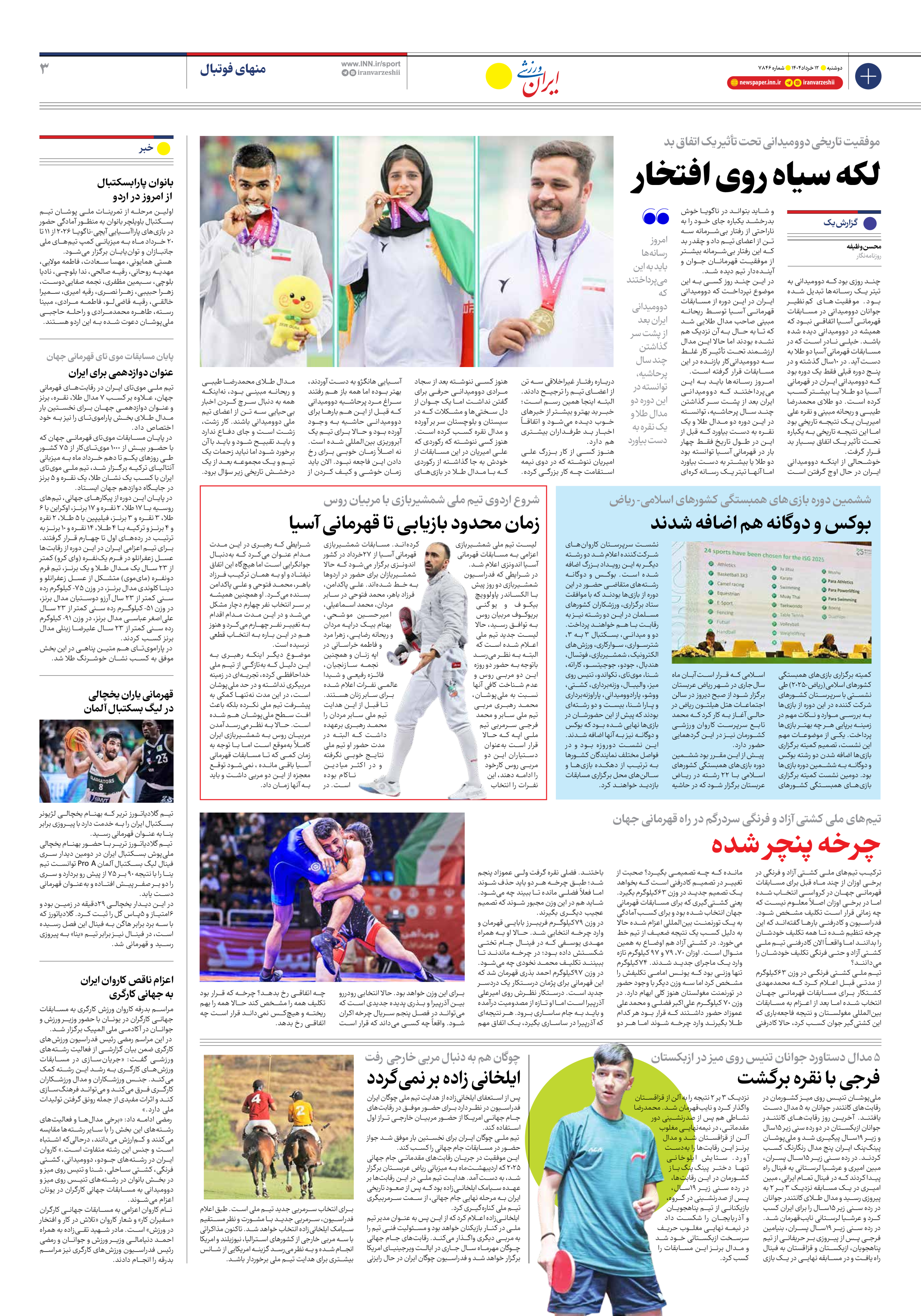 روزنامه ایران ورزشی - شماره هفت هزار و هشتصد و چهل و شش - ۱۲ خرداد ۱۴۰۴ - صفحه ۳