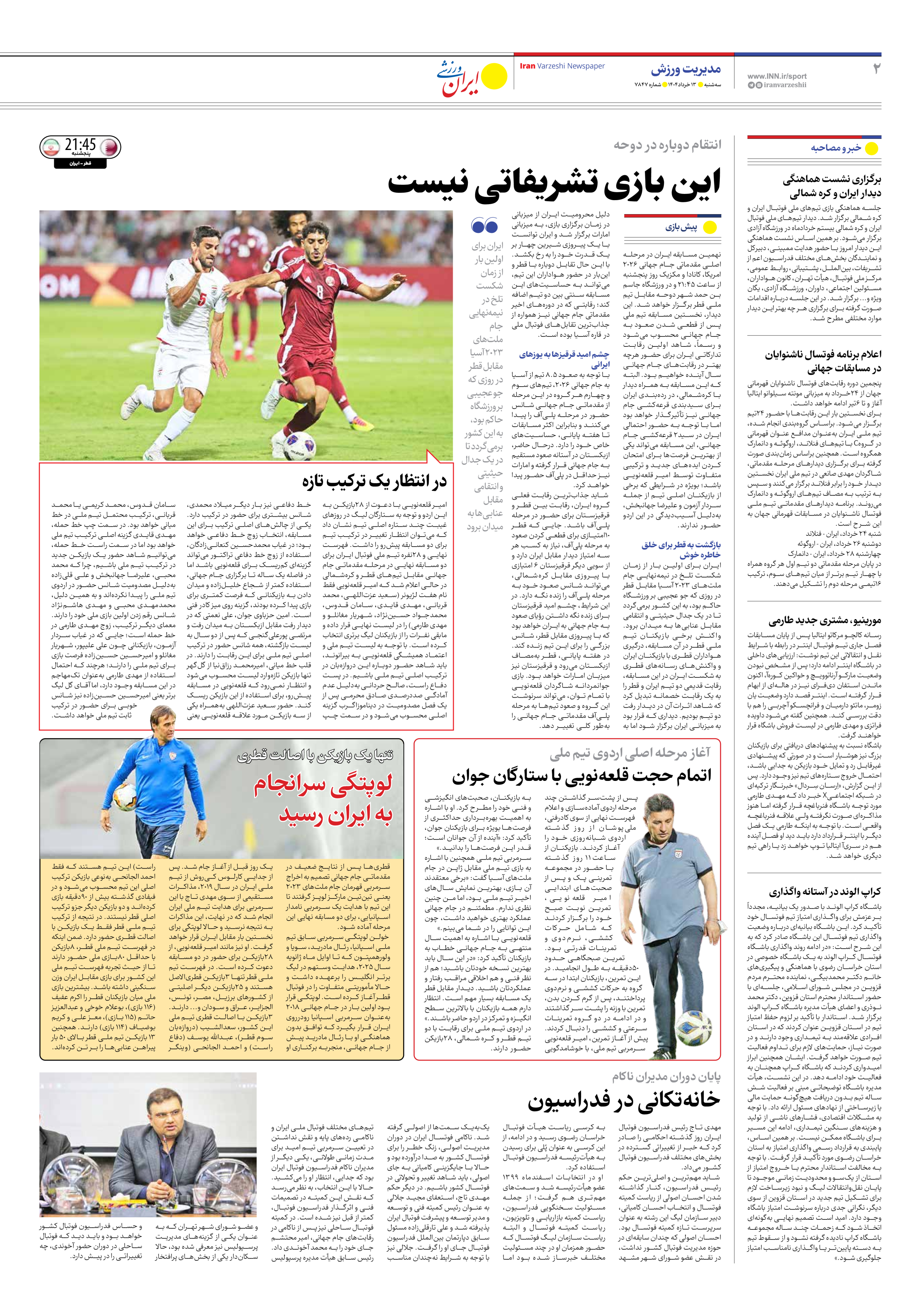 روزنامه ایران ورزشی - شماره هفت هزار و هشتصد و چهل و هفت - ۱۳ خرداد ۱۴۰۴ - صفحه ۲