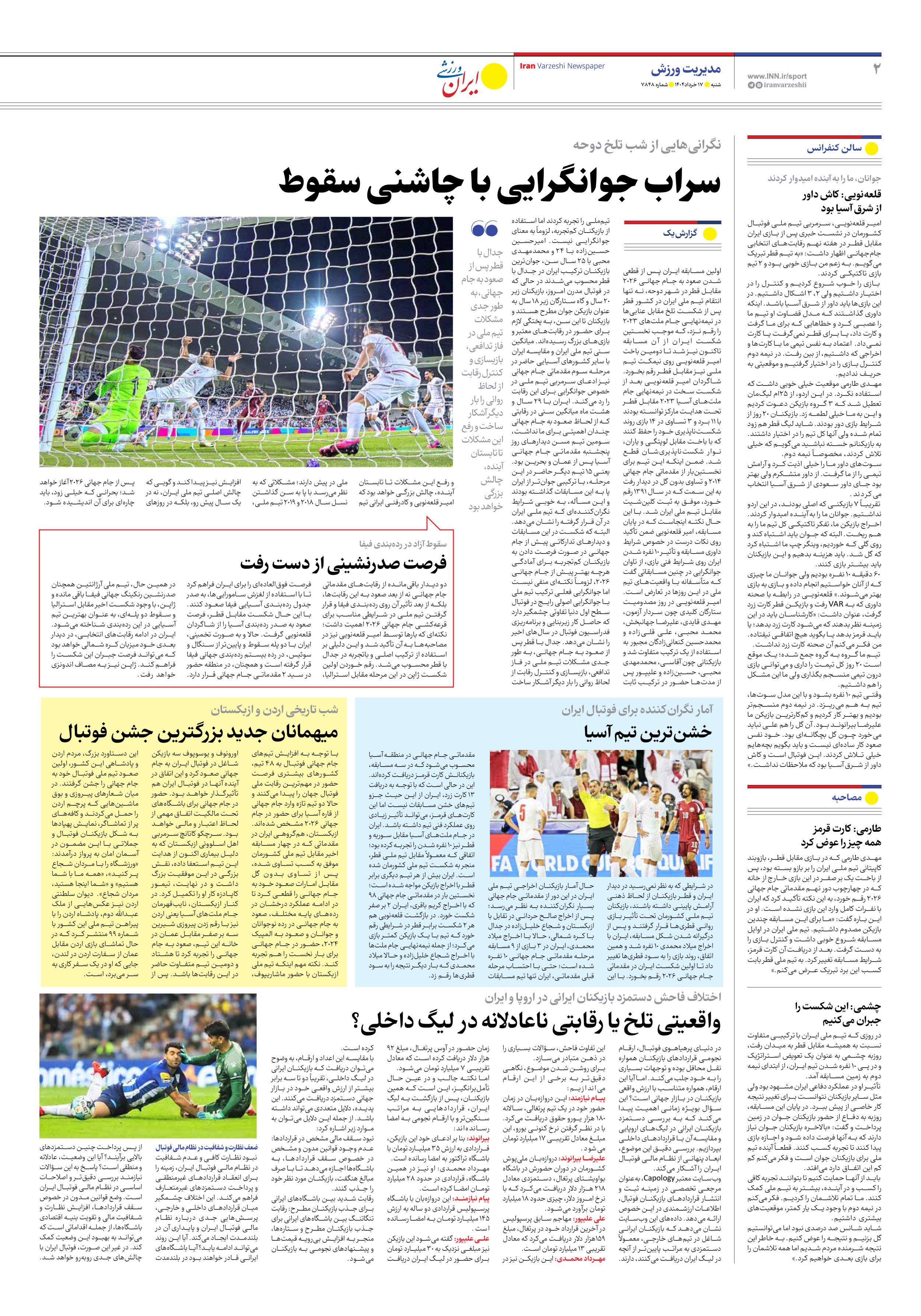 روزنامه ایران ورزشی - شماره هفت هزار و هشتصد و چهل و هشت - ۱۷ خرداد ۱۴۰۴ - صفحه ۲