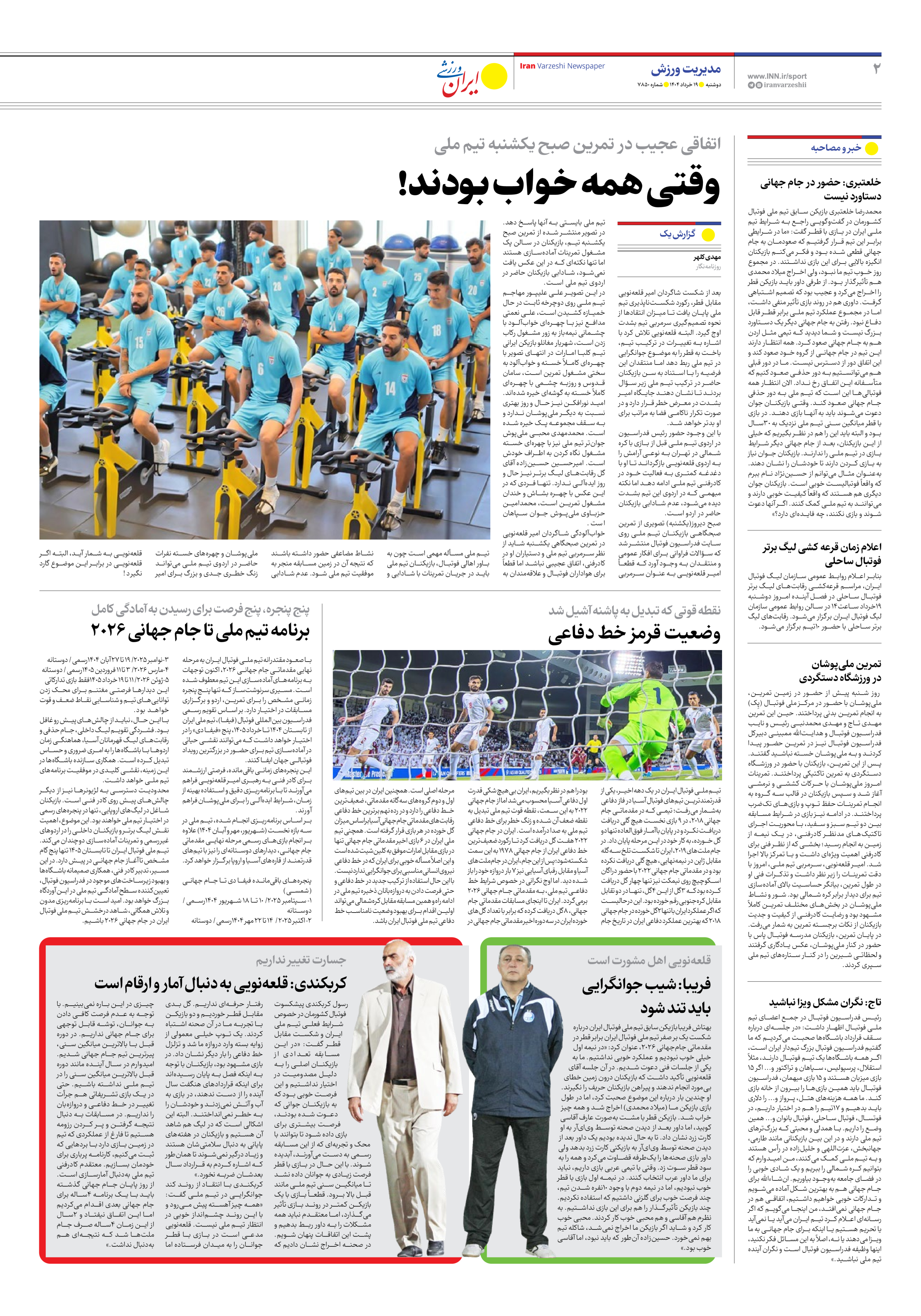 روزنامه ایران ورزشی - شماره هفت هزار و هشتصد و پنجاه - ۱۹ خرداد ۱۴۰۴ - صفحه ۲