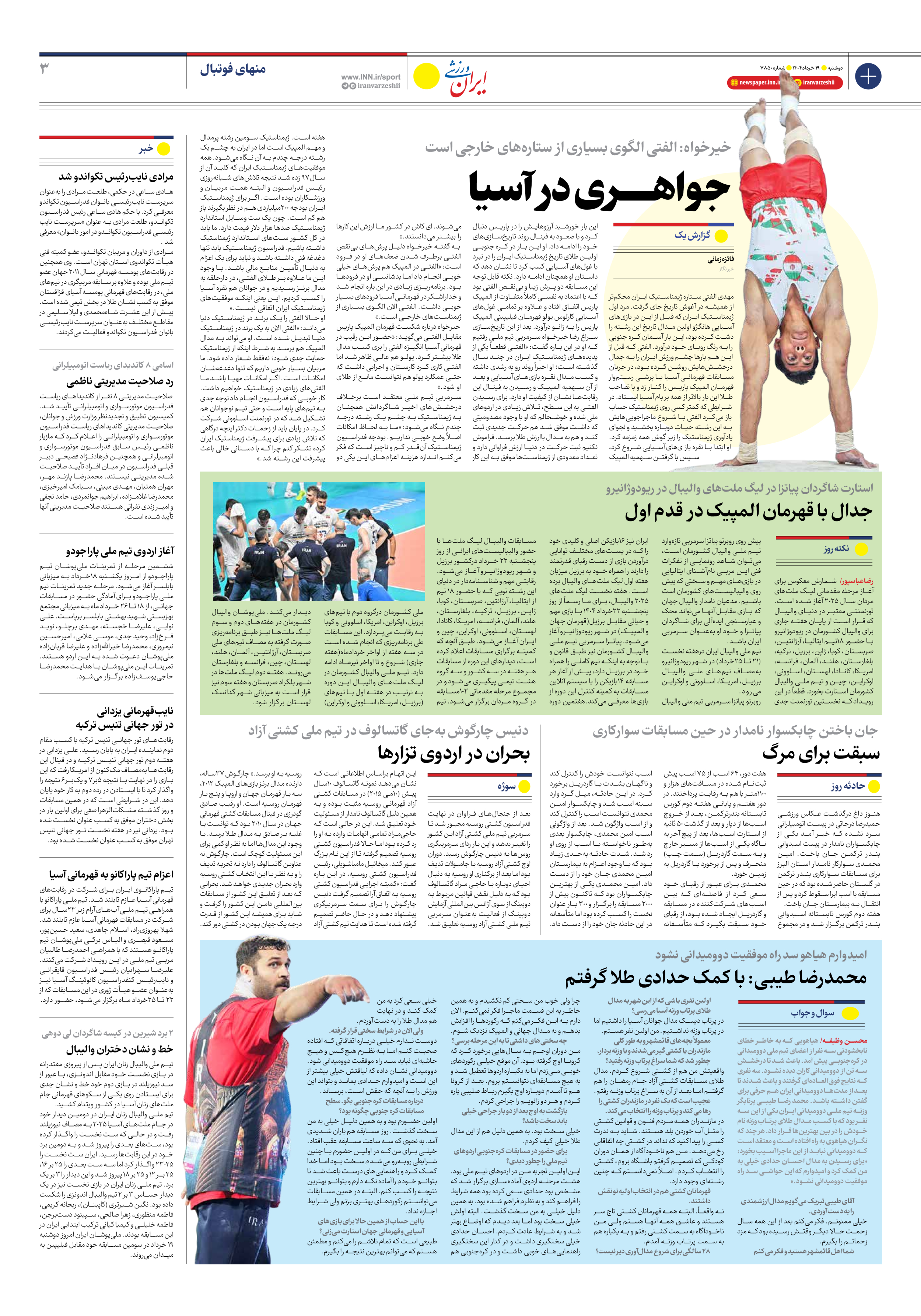 روزنامه ایران ورزشی - شماره هفت هزار و هشتصد و پنجاه - ۱۹ خرداد ۱۴۰۴ - صفحه ۳