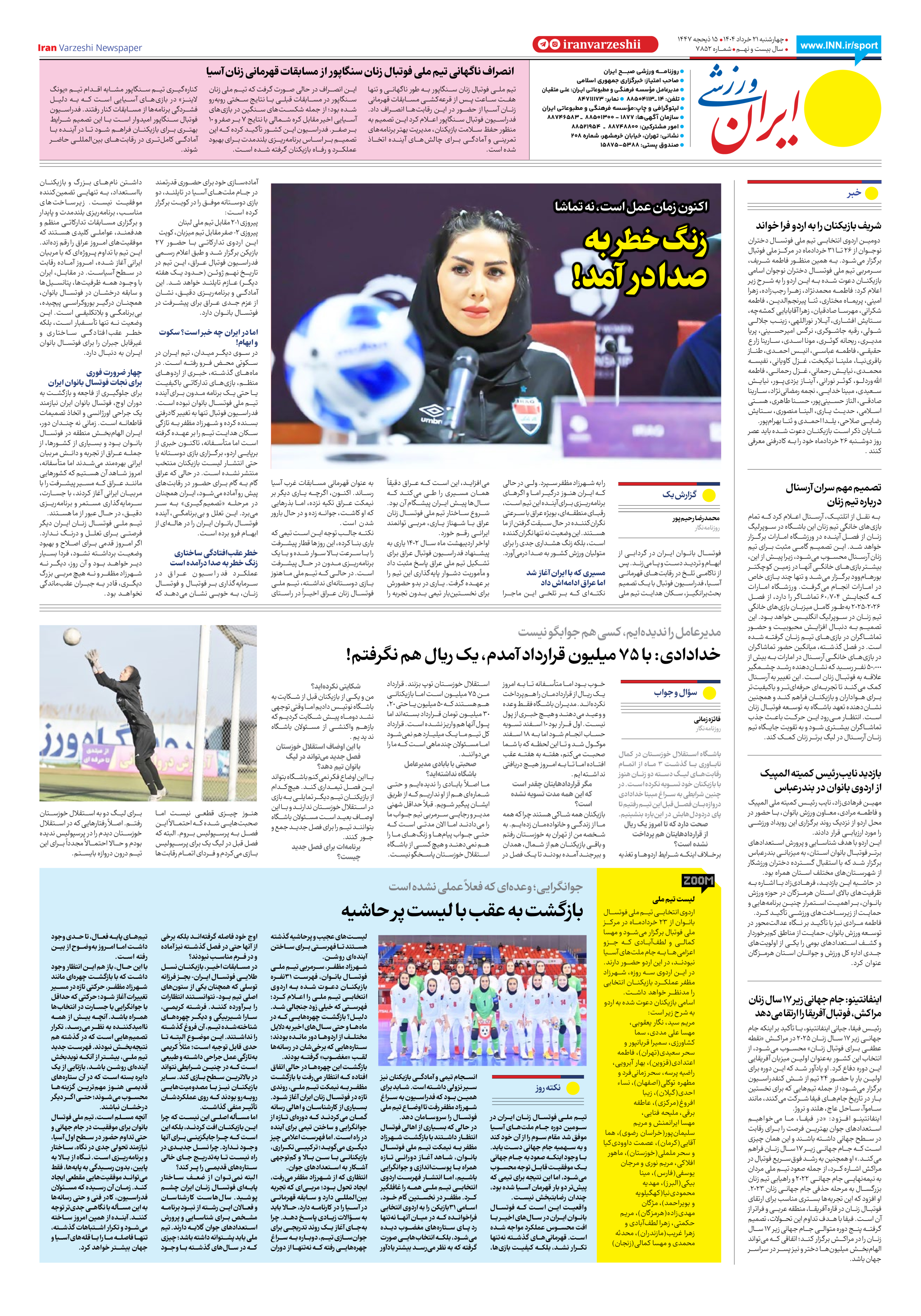 شماره هفت هزار و هشتصد و پنجاه و دو - ۲۱ خرداد ۱۴۰۴