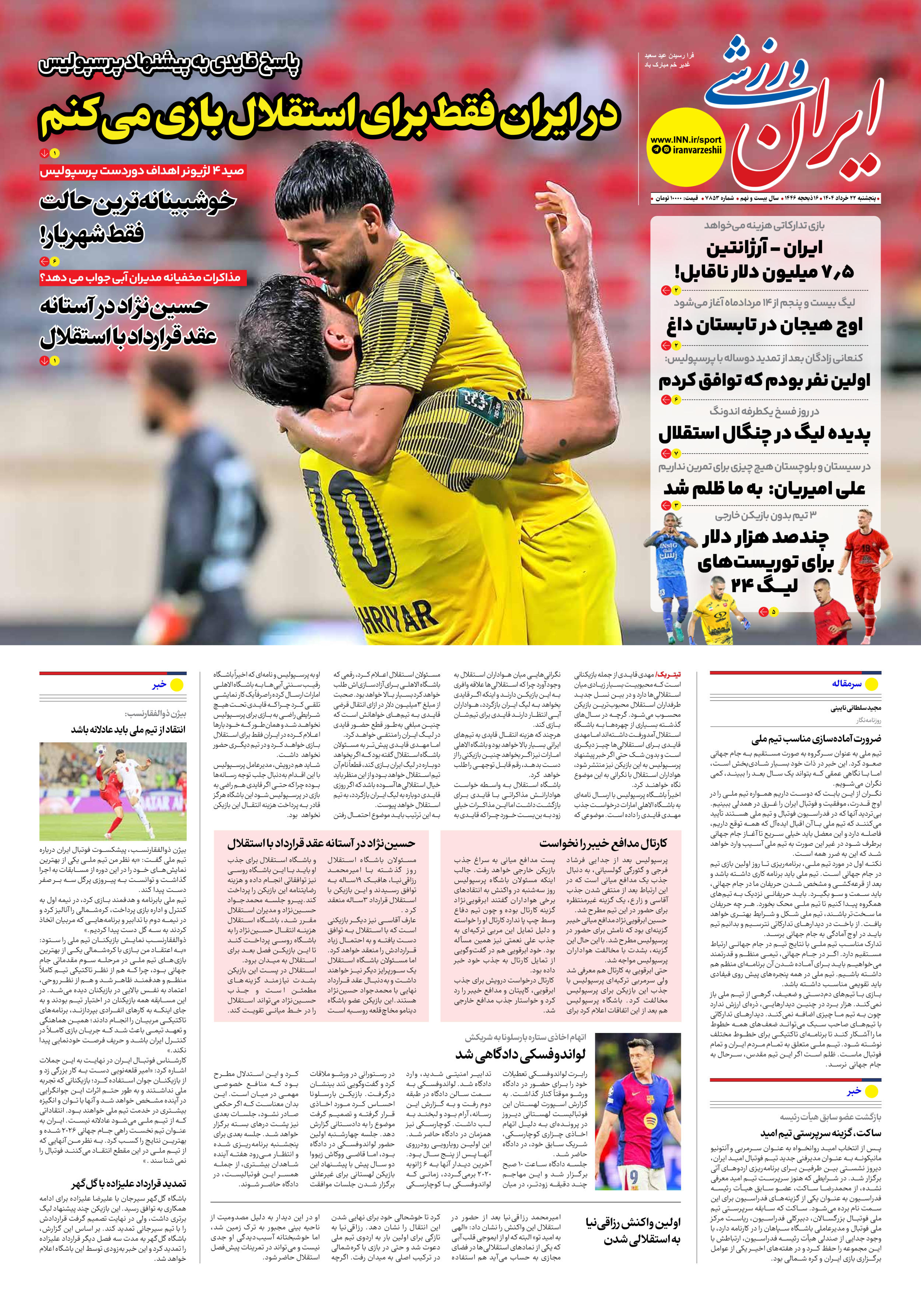 روزنامه ایران ورزشی - شماره هفت هزار و هشتصد و پنجاه و سه - ۲۲ خرداد ۱۴۰۴