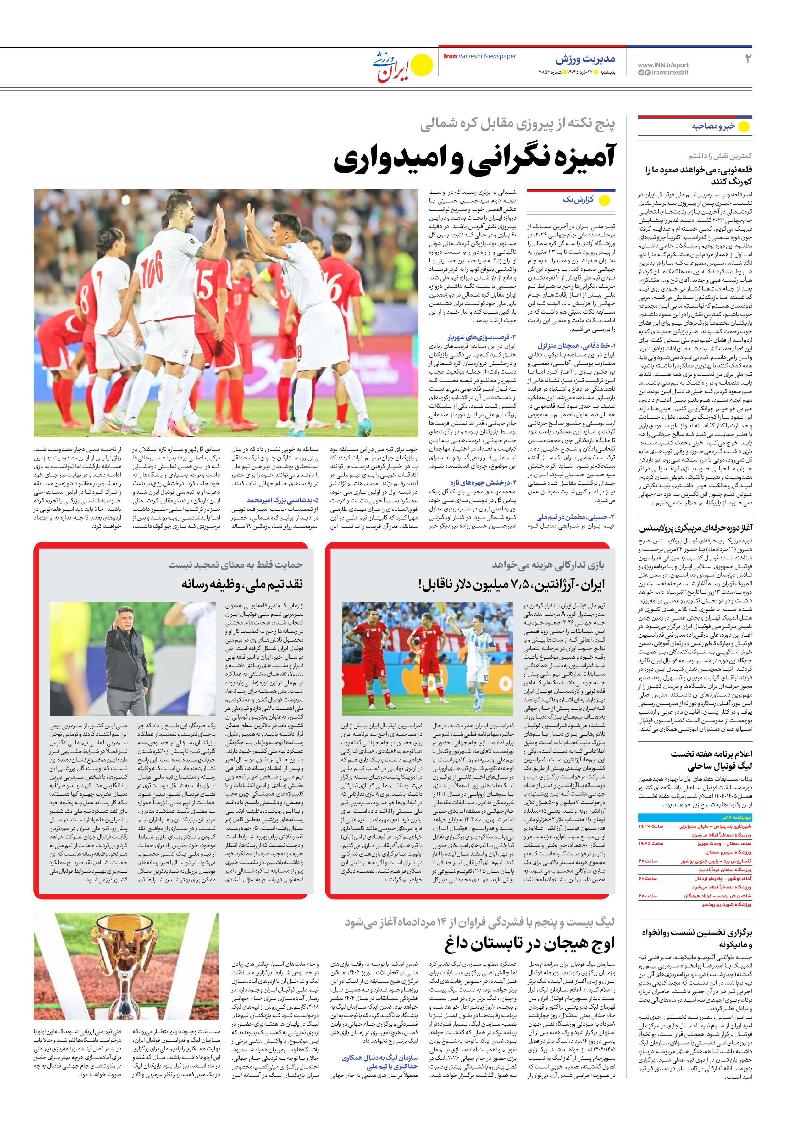 شماره هفت هزار و هشتصد و پنجاه و سه - ۲۲ خرداد ۱۴۰۴