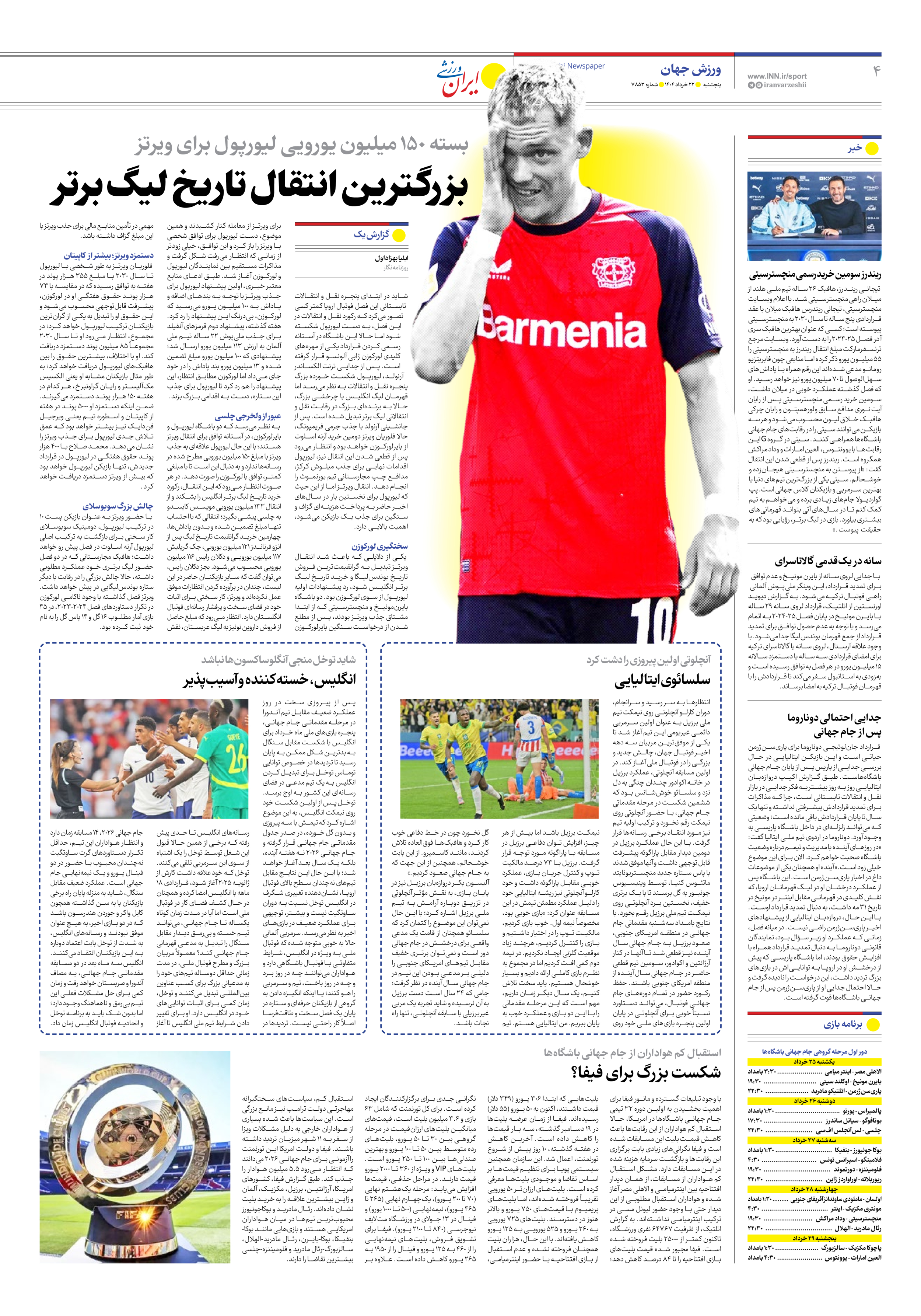 روزنامه ایران ورزشی - شماره هفت هزار و هشتصد و پنجاه و سه - ۲۲ خرداد ۱۴۰۴ - صفحه ۴