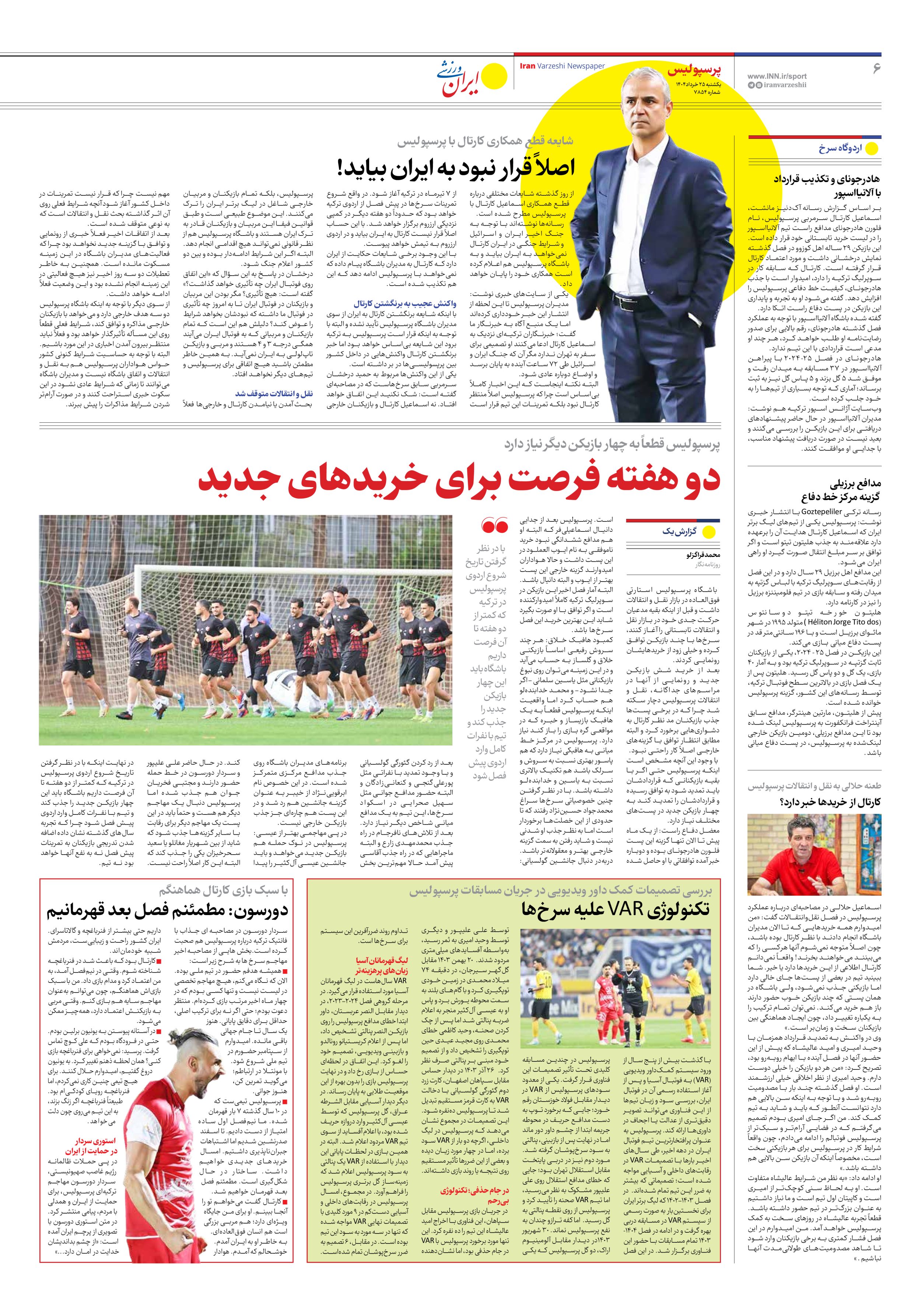 روزنامه ایران ورزشی - شماره هفت هزار و هشتصد و پنجاه و چهار - ۲۵ خرداد ۱۴۰۴ - صفحه ۶