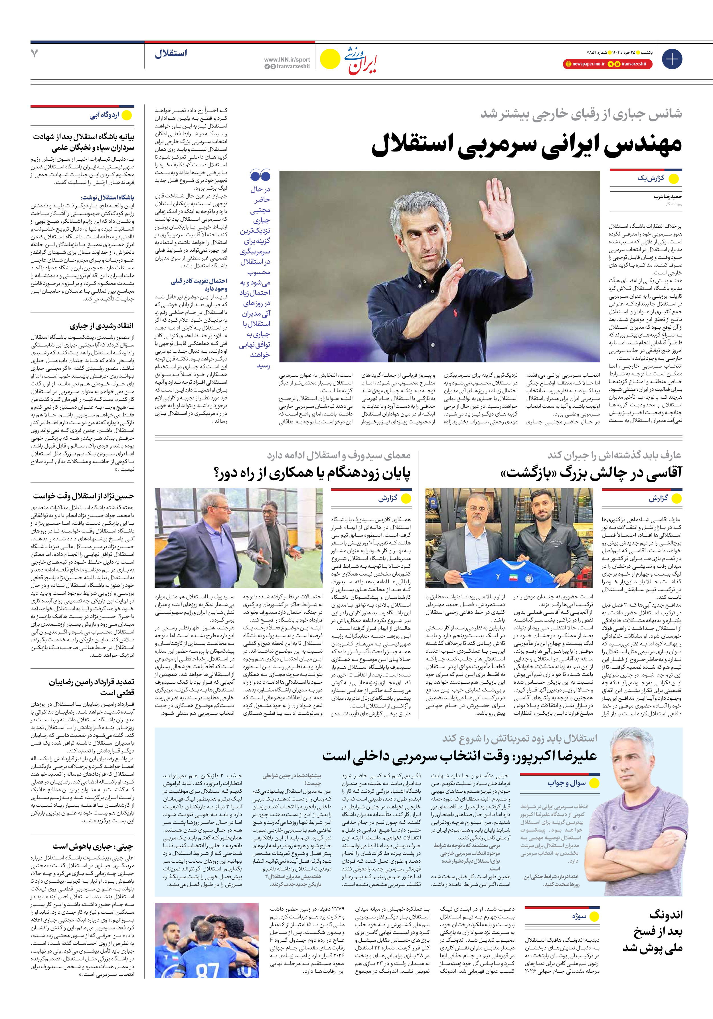 روزنامه ایران ورزشی - شماره هفت هزار و هشتصد و پنجاه و چهار - ۲۵ خرداد ۱۴۰۴ - صفحه ۷