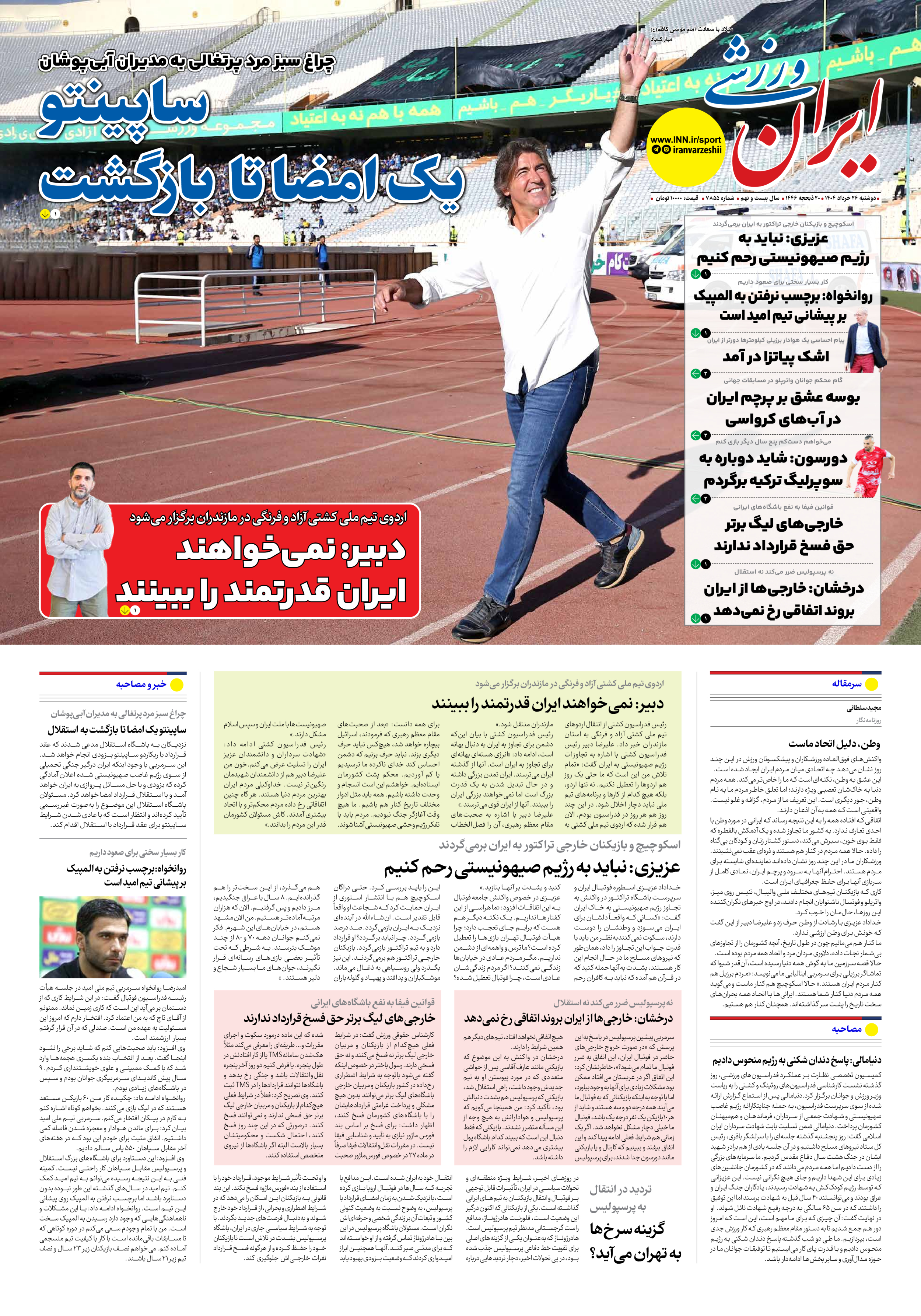 روزنامه ایران ورزشی - شماره هفت هزار و هشتصد و پنجاه و پنج - ۲۶ خرداد ۱۴۰۴