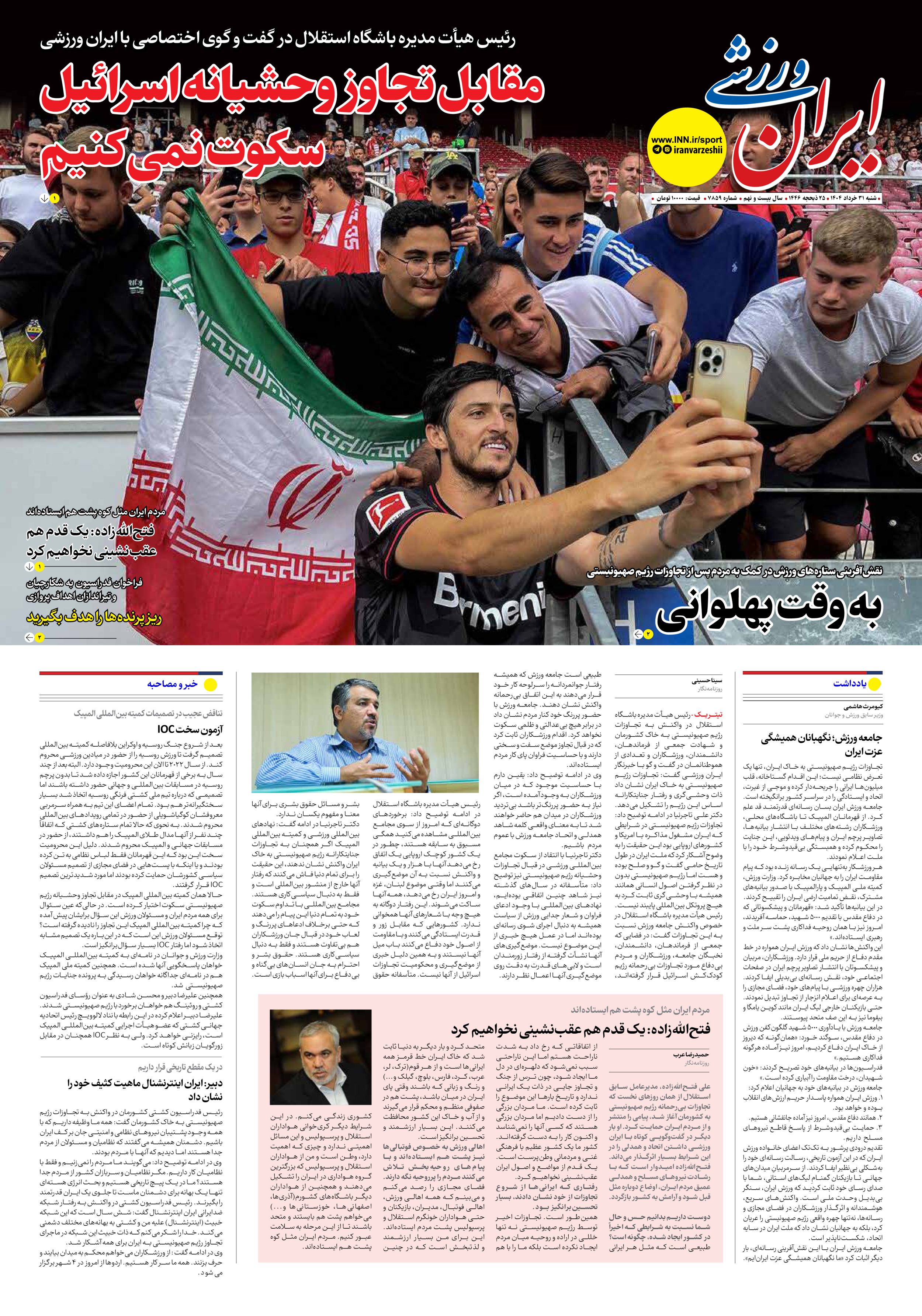 شماره هفت هزار و هشتصد و پنجاه و نه - ۳۱ خرداد ۱۴۰۴