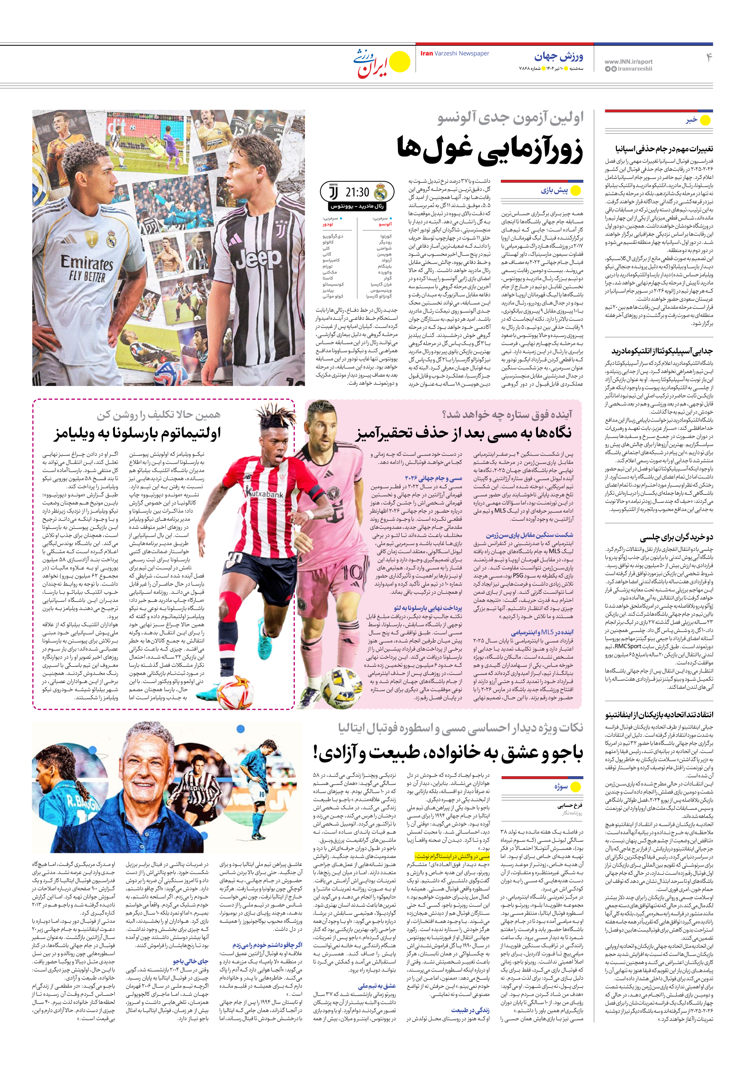 روزنامه ایران ورزشی - شماره هفت هزار و هشتصد و شصت و هشت - ۱۰ تیر ۱۴۰۴ - صفحه ۴