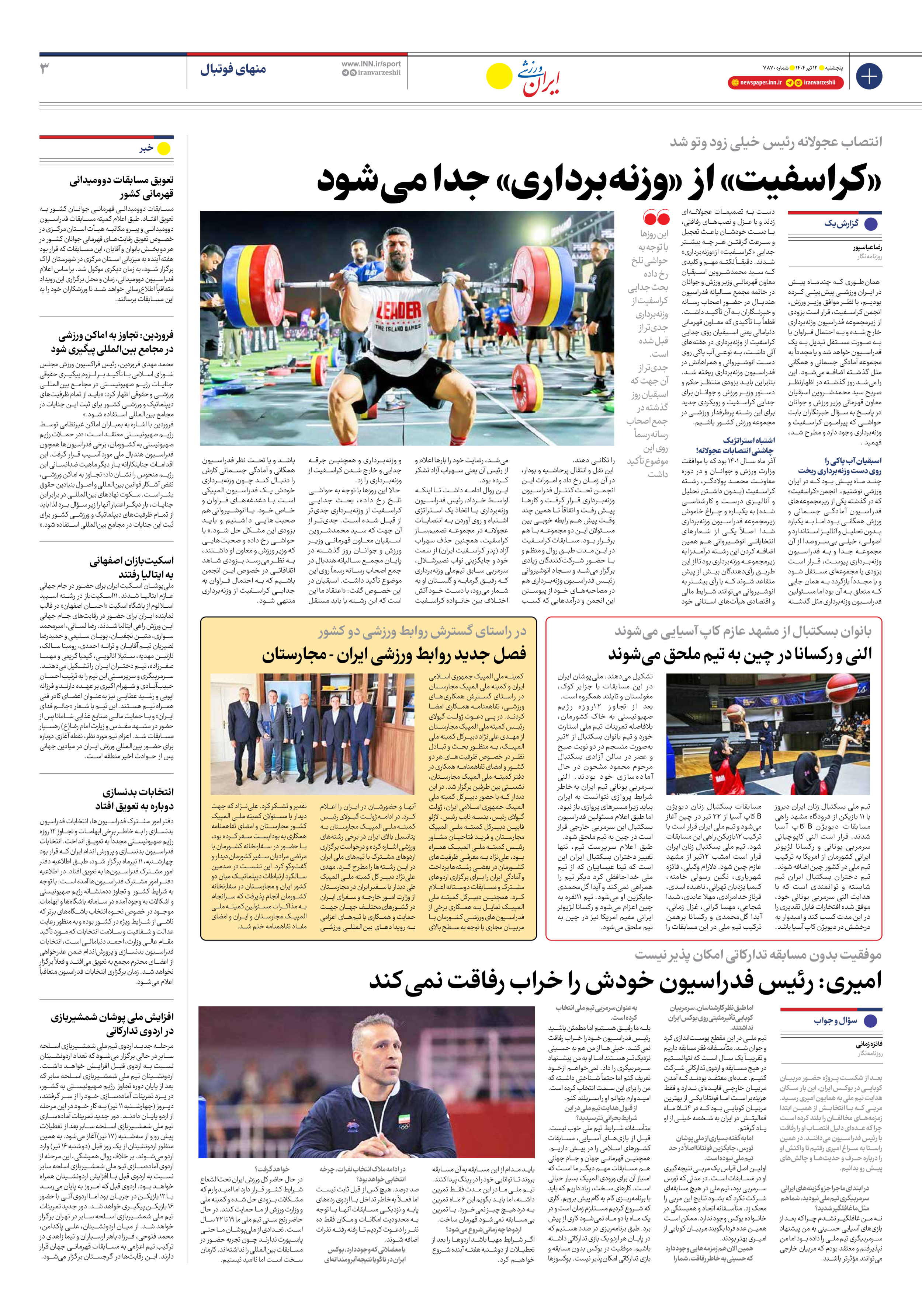 روزنامه ایران ورزشی - شماره هفت هزار و هشتصد و هفتاد - ۱۲ تیر ۱۴۰۴ - صفحه ۳