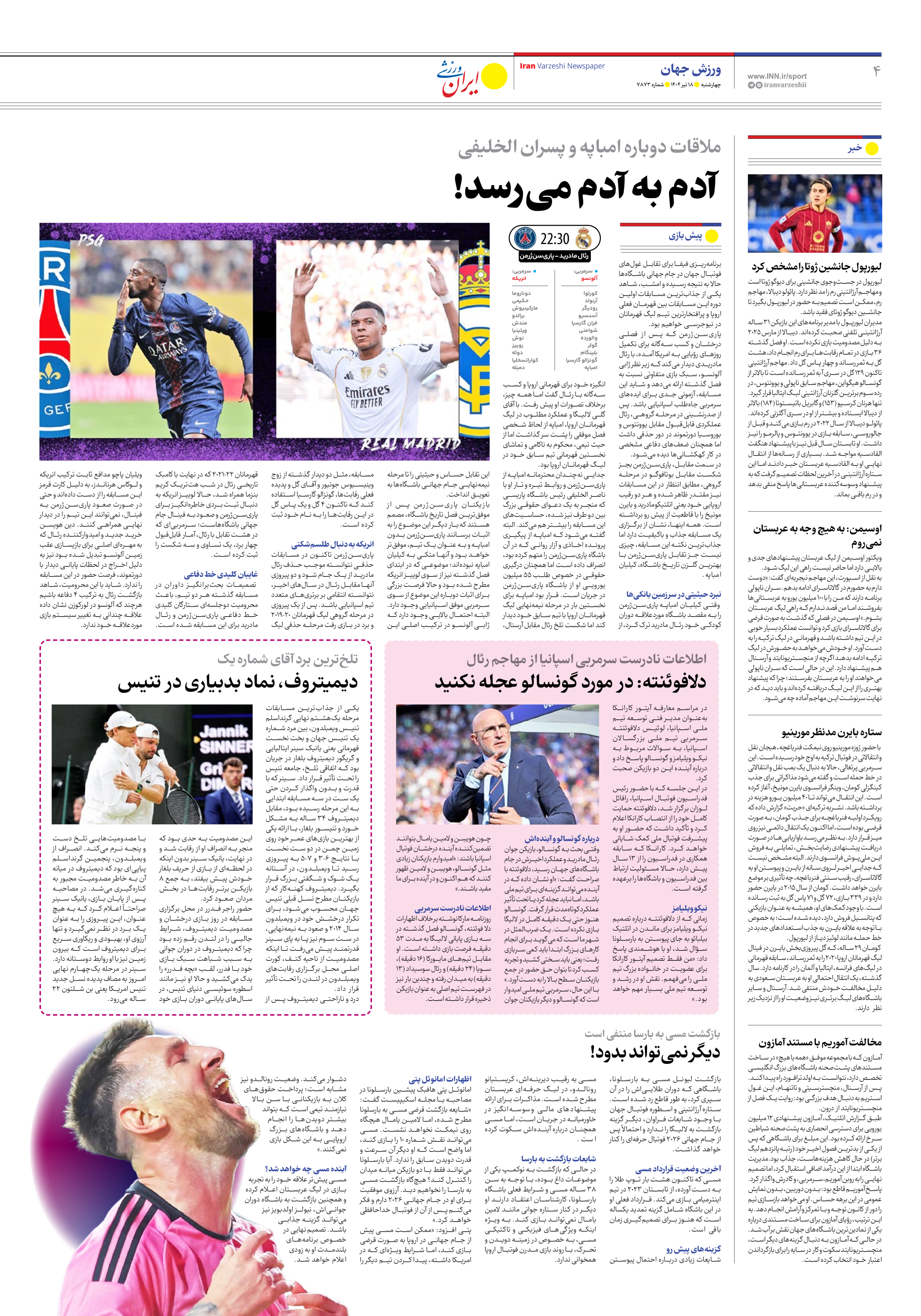 روزنامه ایران ورزشی - شماره هفت هزار و هشتصد و هفتاد و سه - ۱۸ تیر ۱۴۰۴ - صفحه ۴