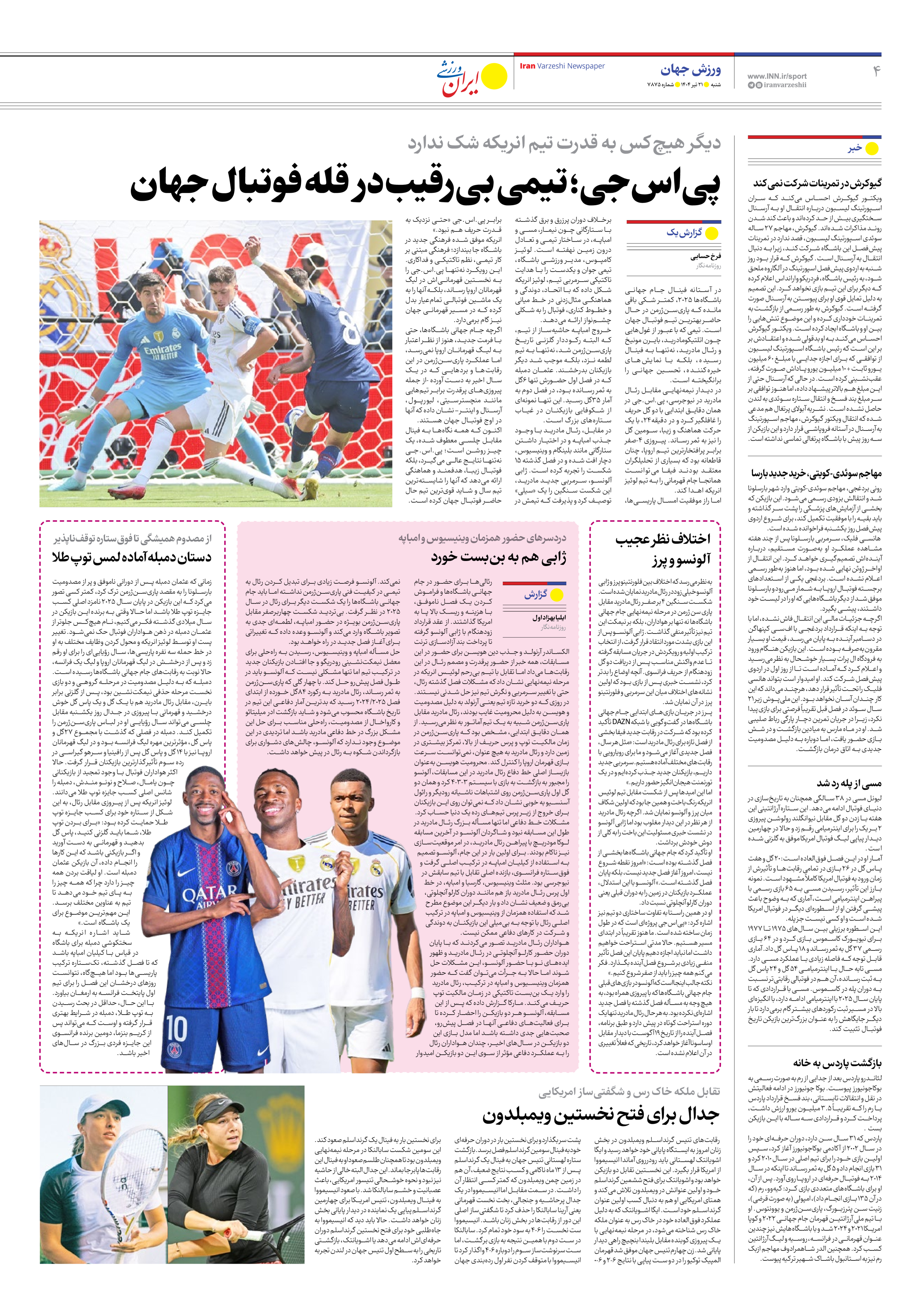 روزنامه ایران ورزشی - شماره هفت هزار و هشتصد و هفتاد و پنج - ۲۱ تیر ۱۴۰۴ - صفحه ۴