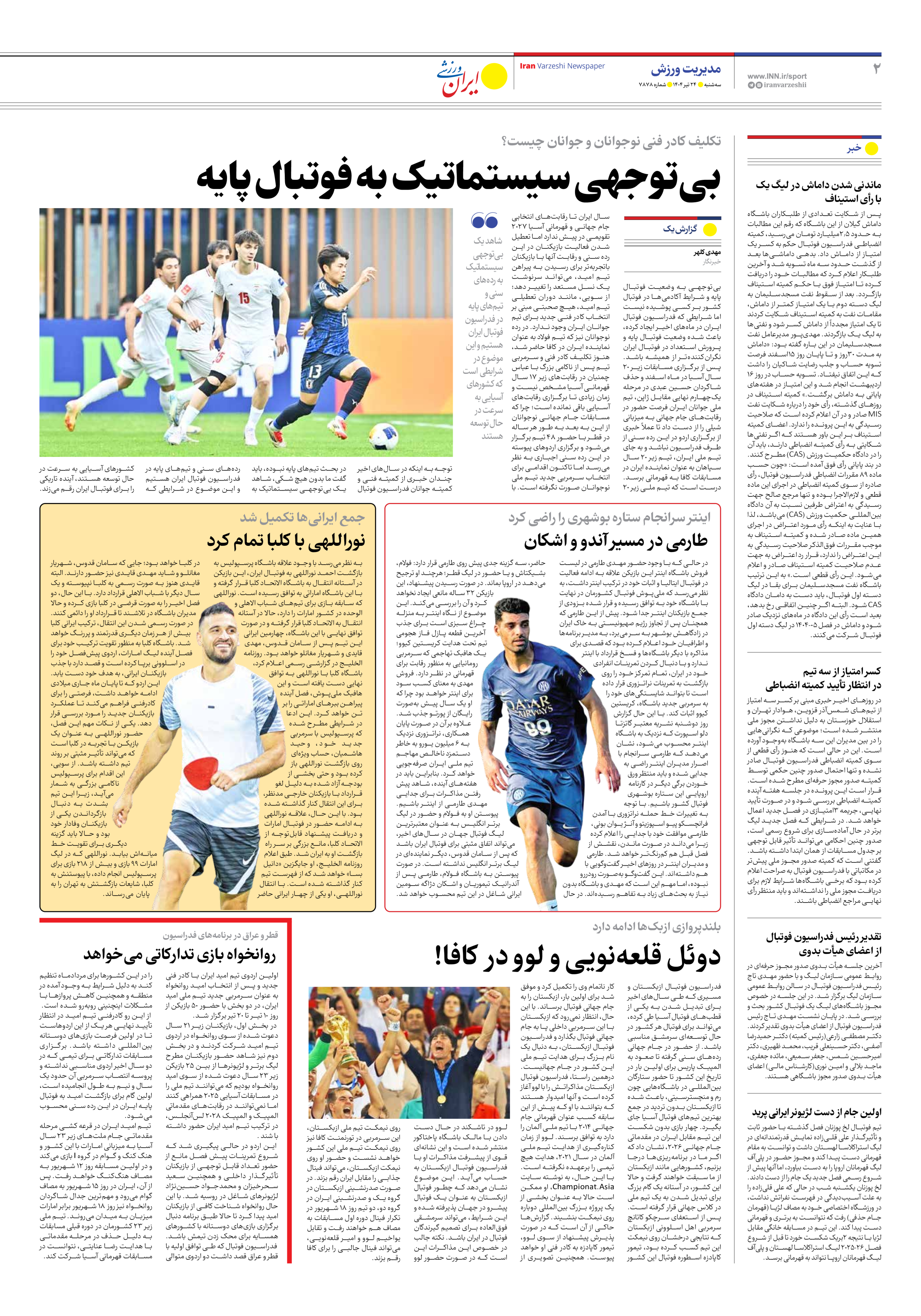 روزنامه ایران ورزشی - شماره هفت هزار و هشتصد و هفتاد و هشت - ۲۴ تیر ۱۴۰۴ - صفحه ۲