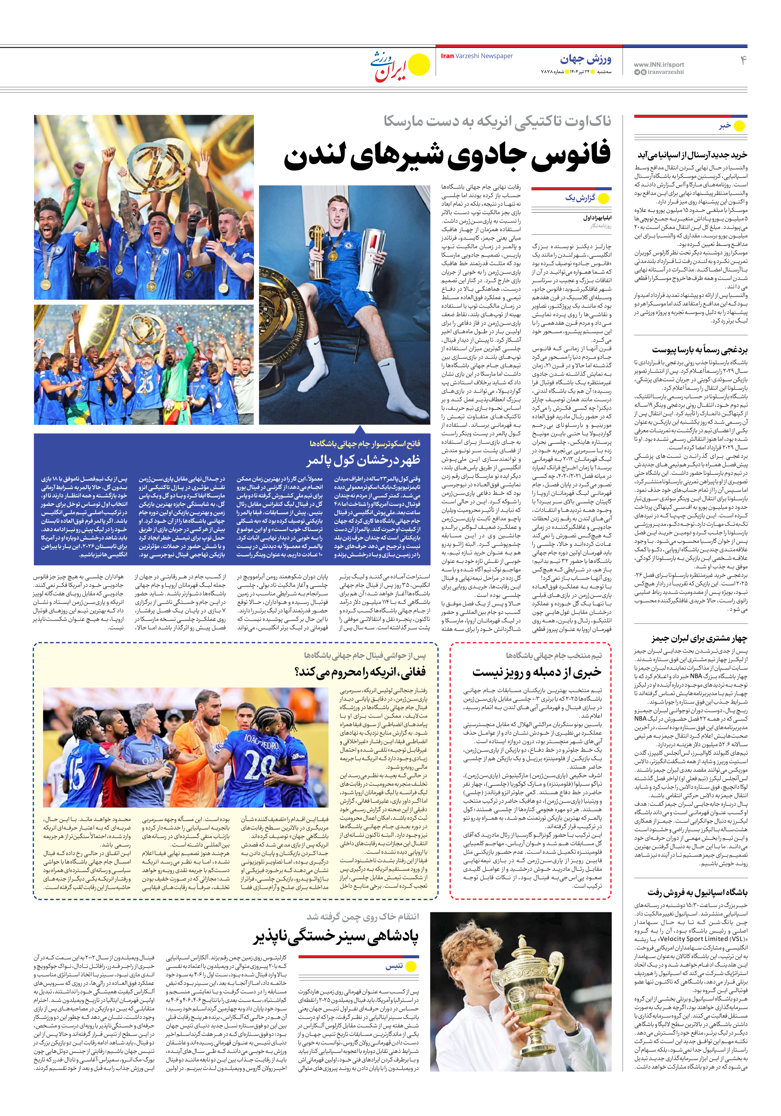 روزنامه ایران ورزشی - شماره هفت هزار و هشتصد و هفتاد و هشت - ۲۴ تیر ۱۴۰۴ - صفحه ۴