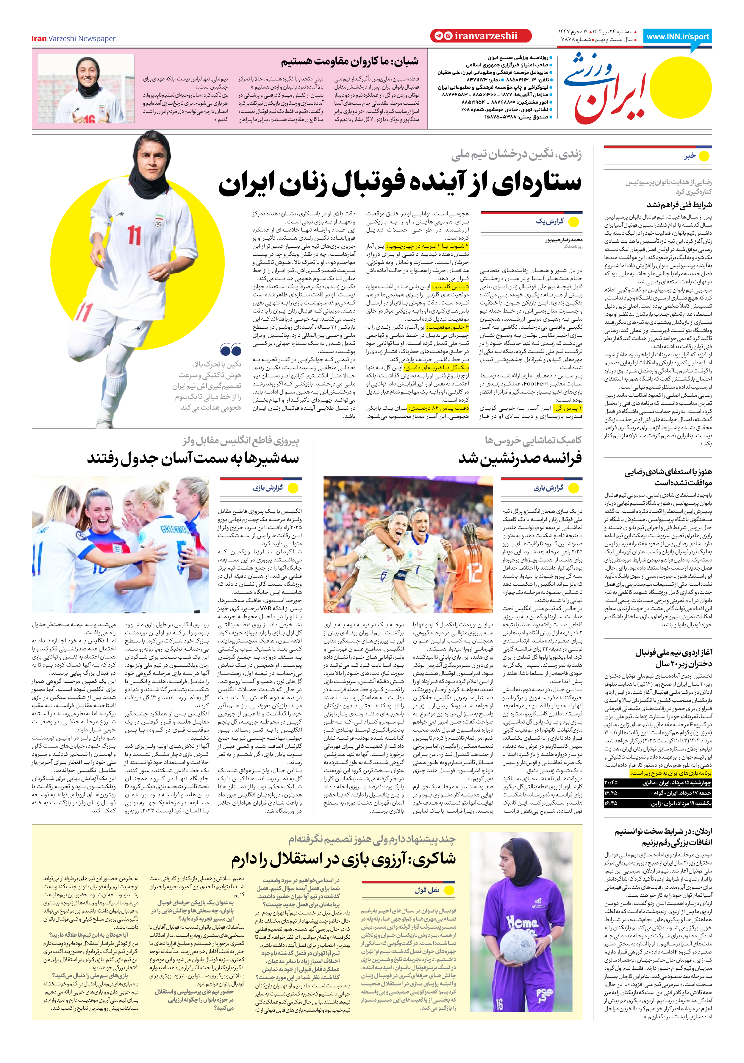 روزنامه ایران ورزشی - شماره هفت هزار و هشتصد و هفتاد و هشت - ۲۴ تیر ۱۴۰۴ - صفحه ۸
