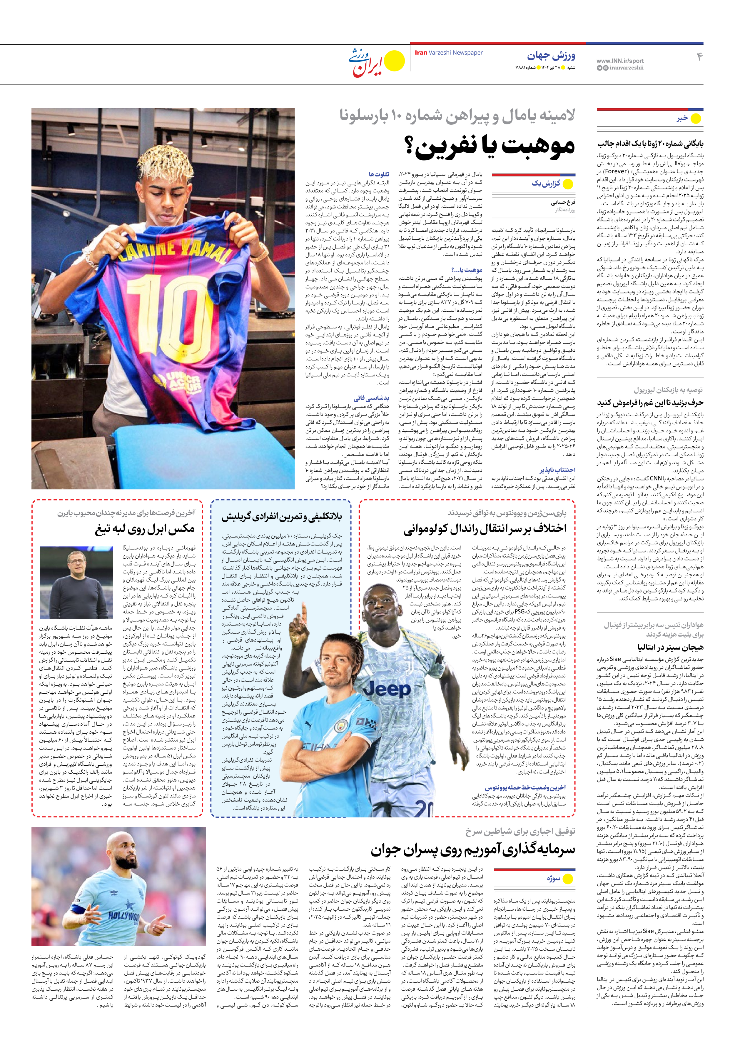 روزنامه ایران ورزشی - شماره هفت هزار و هشتصد و هشتاد و یک - ۲۸ تیر ۱۴۰۴ - صفحه ۴