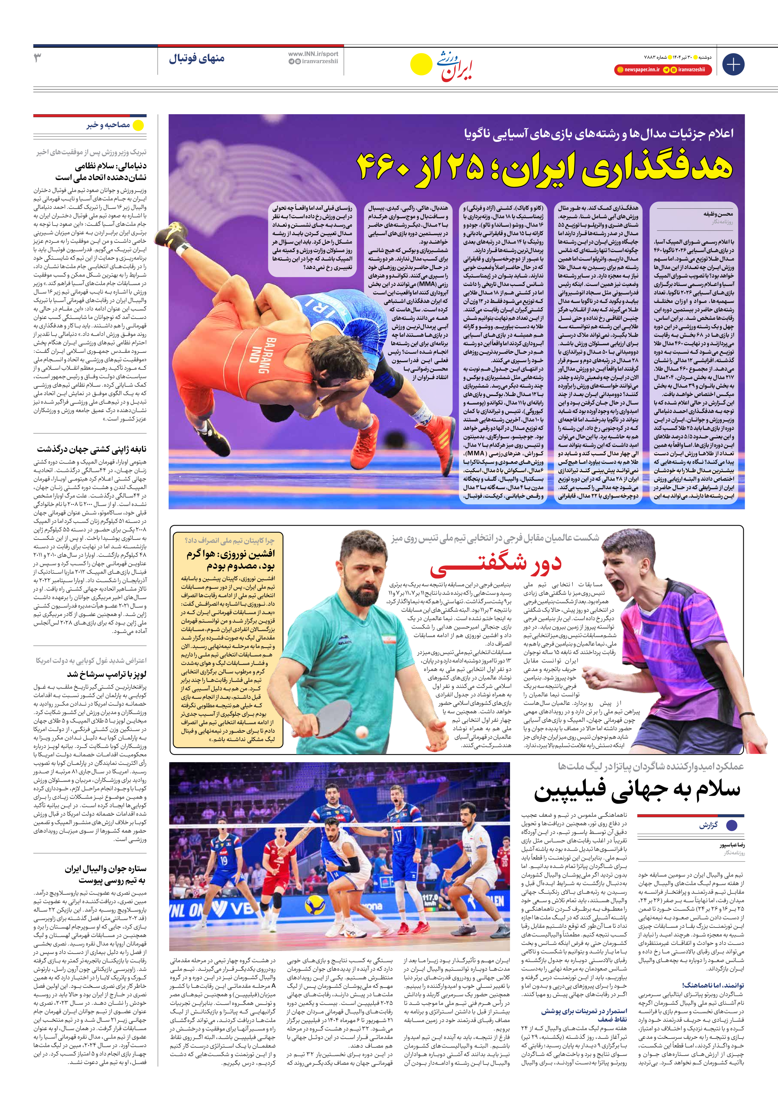 روزنامه ایران ورزشی - شماره هفت هزار و هشتصد و هشتاد و سه - ۳۰ تیر ۱۴۰۴ - صفحه ۳