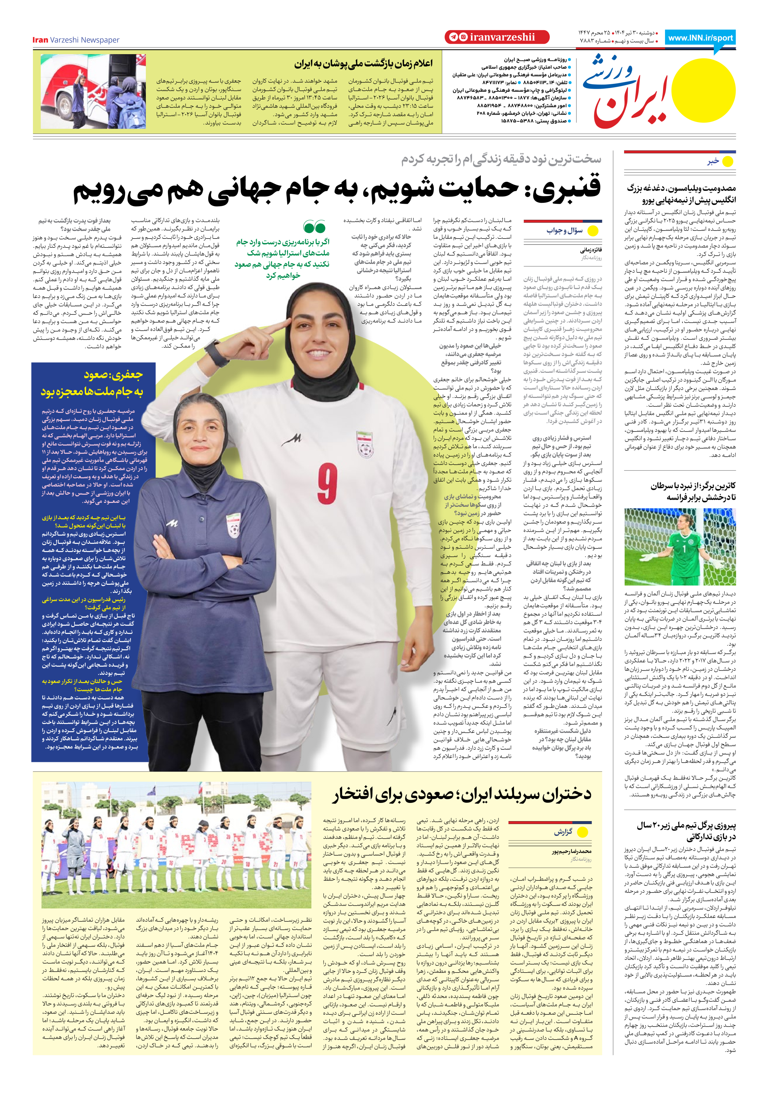 شماره هفت هزار و هشتصد و هشتاد و سه - ۳۰ تیر ۱۴۰۴