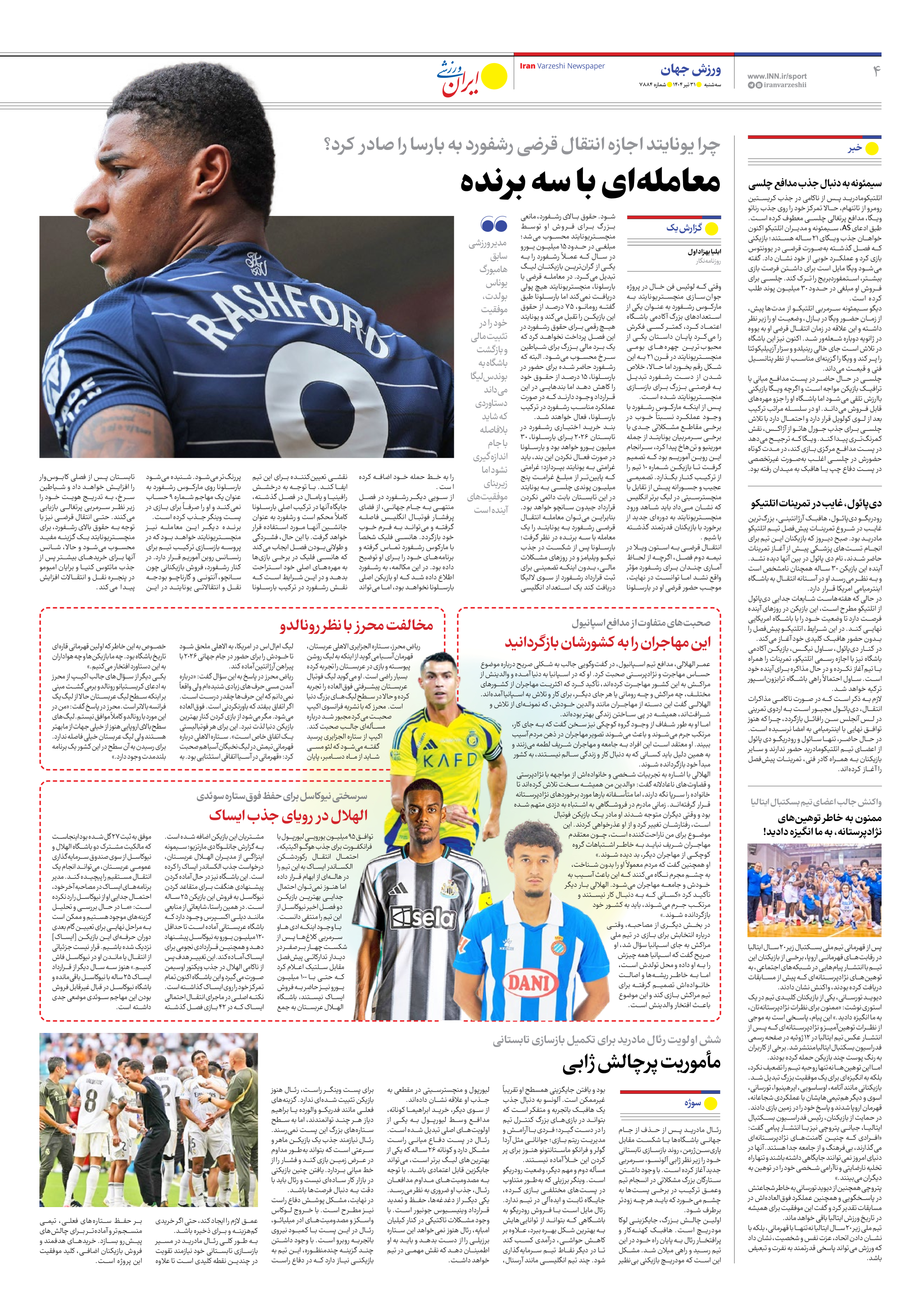 شماره هفت هزار و هشتصد و هشتاد و چهار - ۳۱ تیر ۱۴۰۴