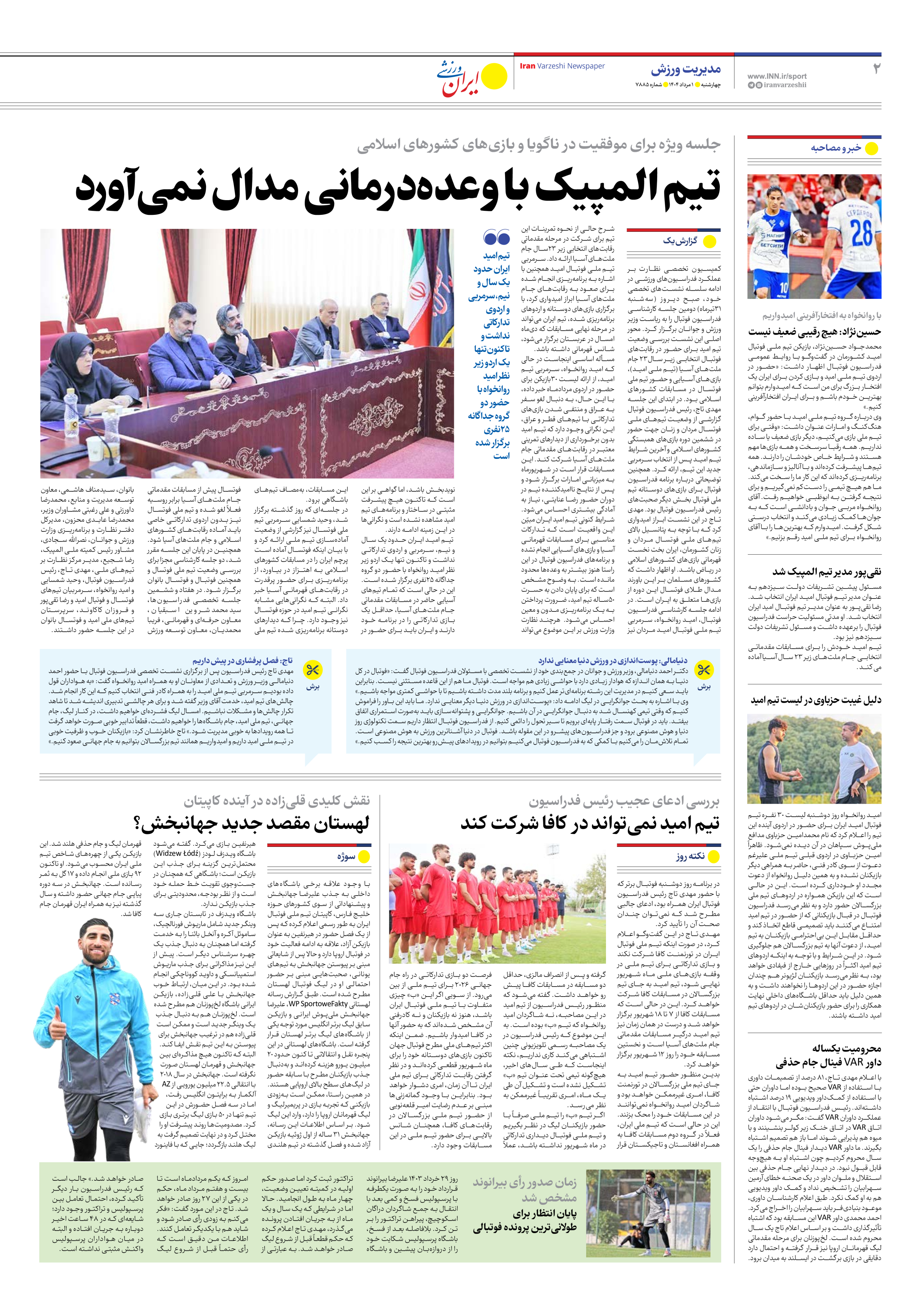 شماره هفت هزار و هشتصد و هشتاد و پنج - ۰۱ مرداد ۱۴۰۴