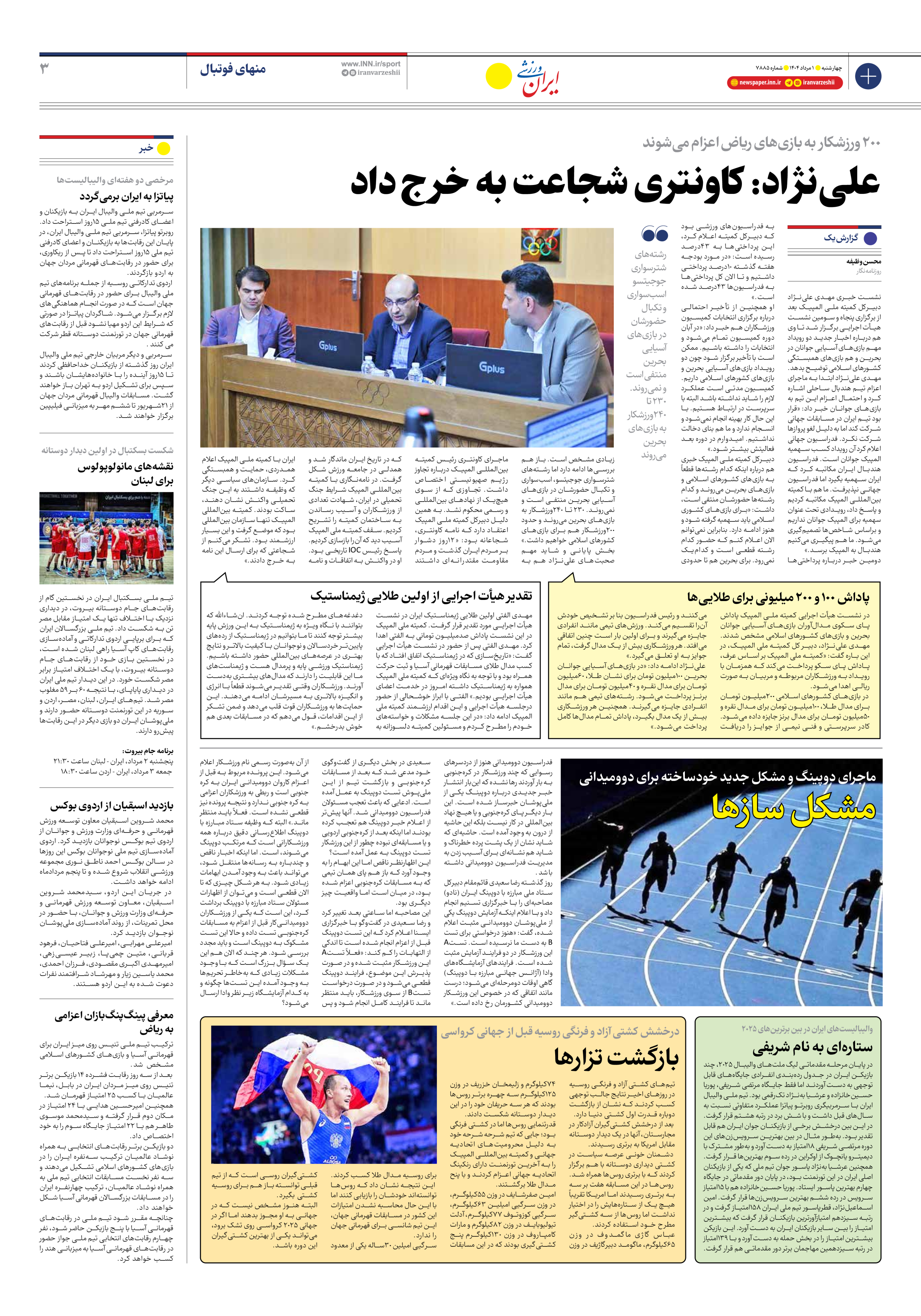 روزنامه ایران ورزشی - شماره هفت هزار و هشتصد و هشتاد و پنج - ۰۱ مرداد ۱۴۰۴ - صفحه ۳