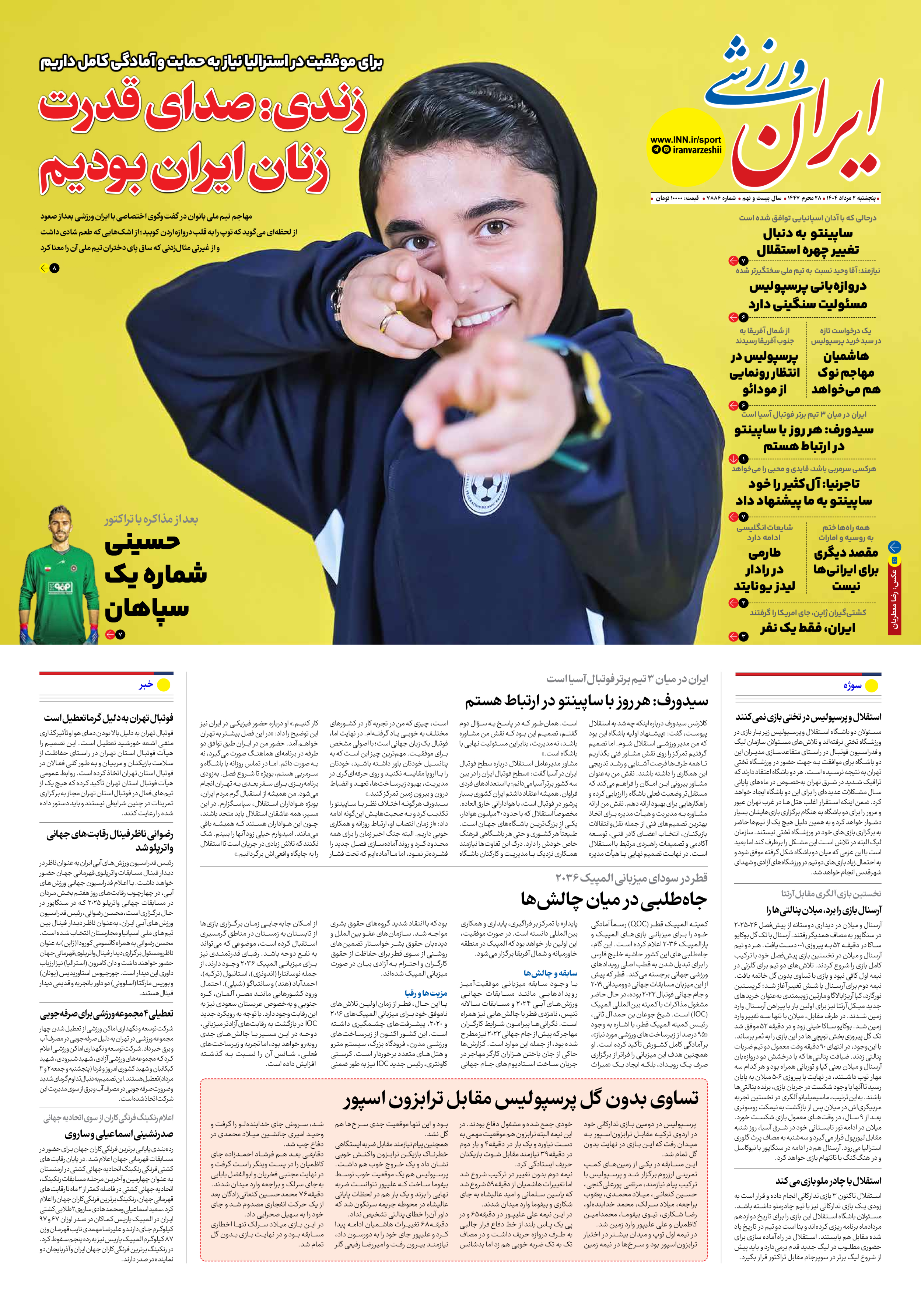 روزنامه ایران ورزشی - شماره هفت هزار و هشتصد و هشتاد و شش - ۰۲ مرداد ۱۴۰۴