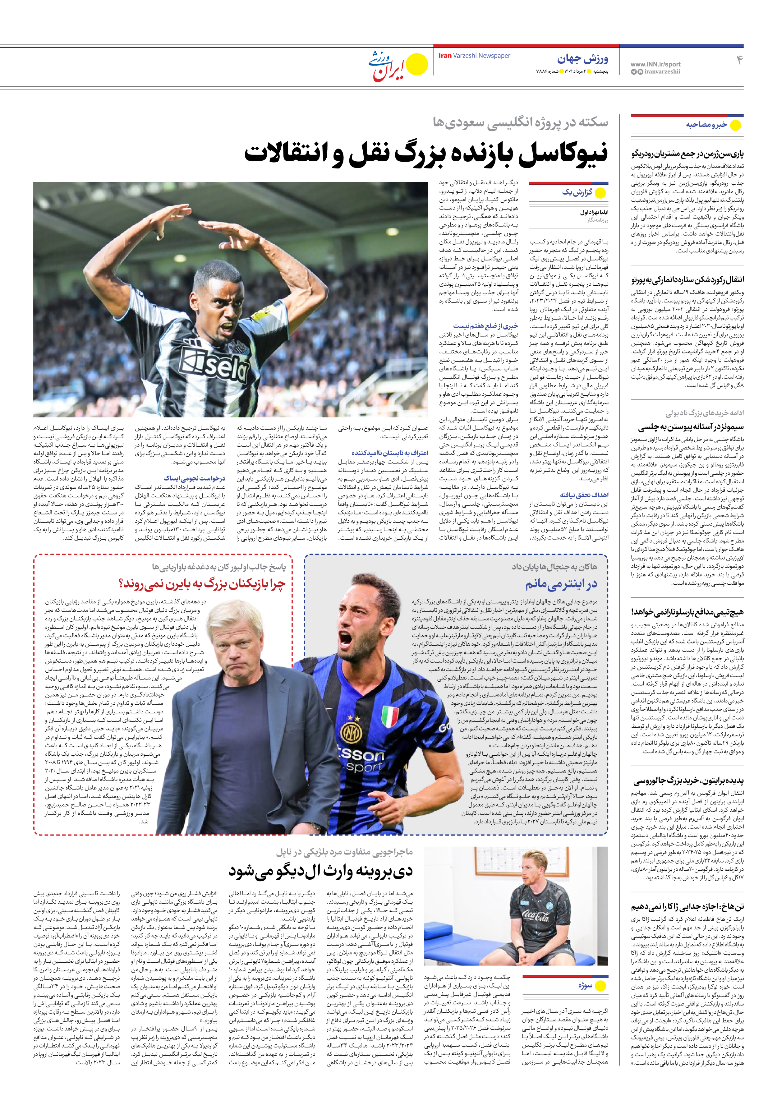 روزنامه ایران ورزشی - شماره هفت هزار و هشتصد و هشتاد و شش - ۰۲ مرداد ۱۴۰۴ - صفحه ۴