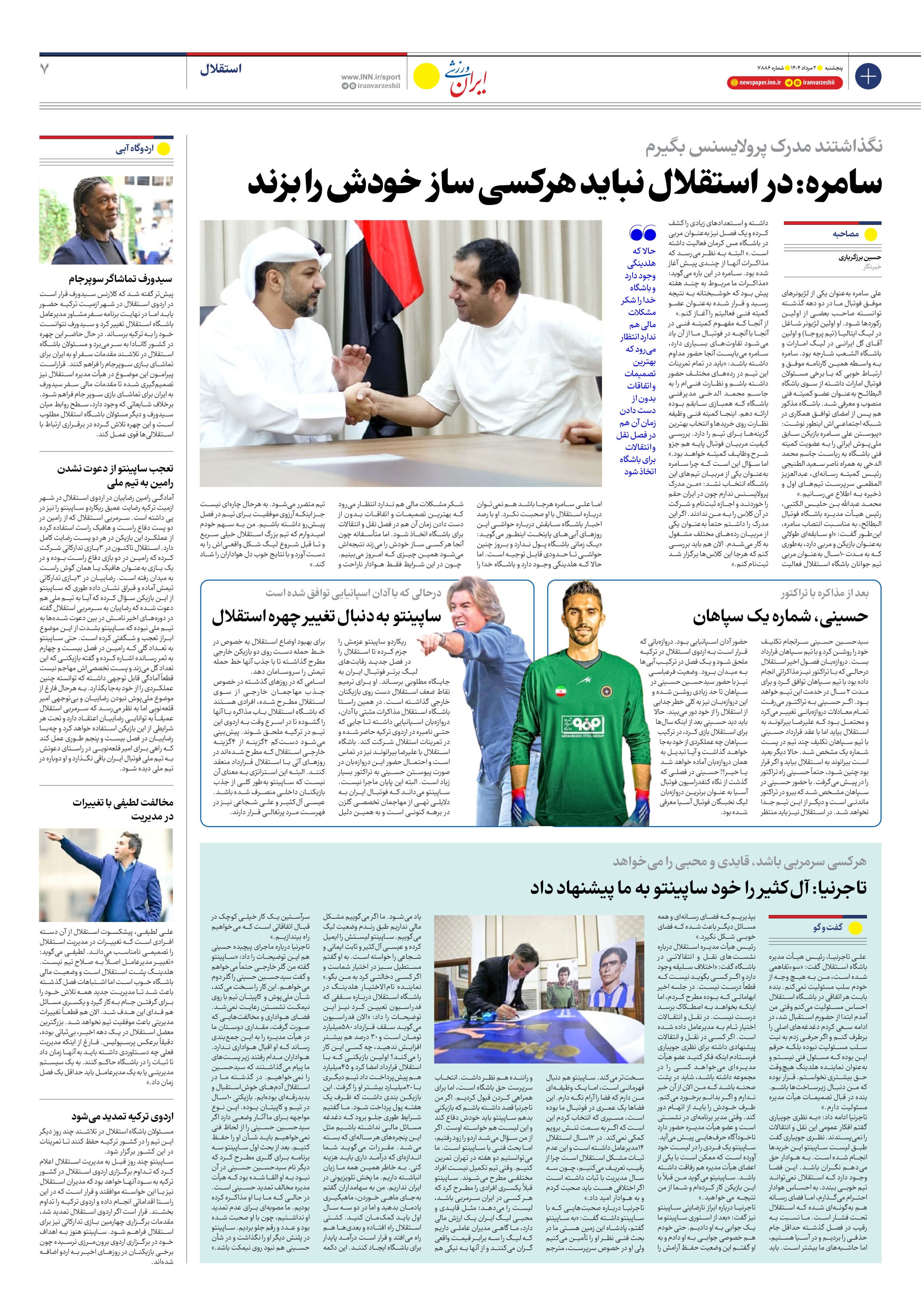 روزنامه ایران ورزشی - شماره هفت هزار و هشتصد و هشتاد و شش - ۰۲ مرداد ۱۴۰۴ - صفحه ۷