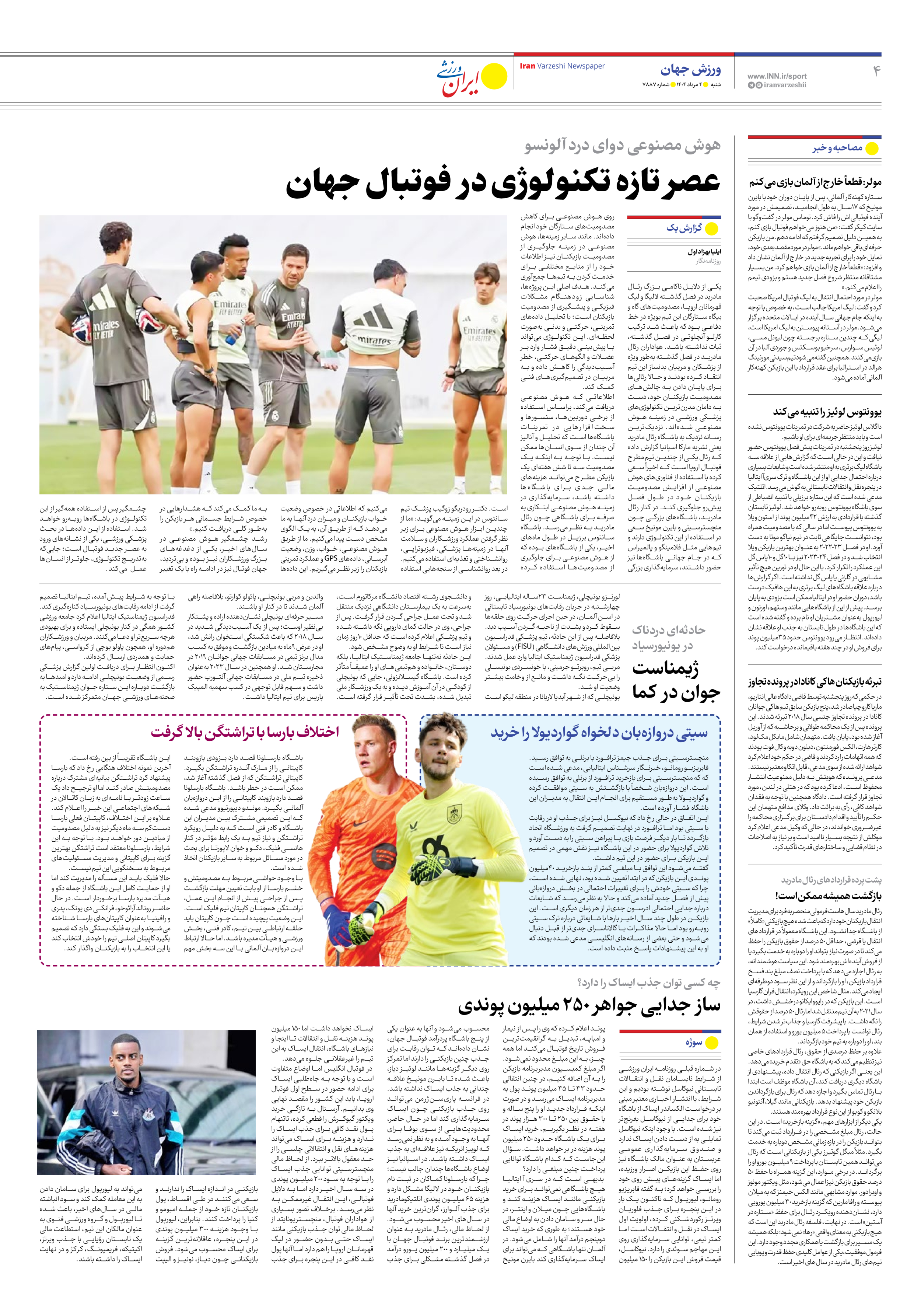 روزنامه ایران ورزشی - شماره هفت هزار و هشتصد و هشتاد و هفت - ۰۴ مرداد ۱۴۰۴ - صفحه ۴