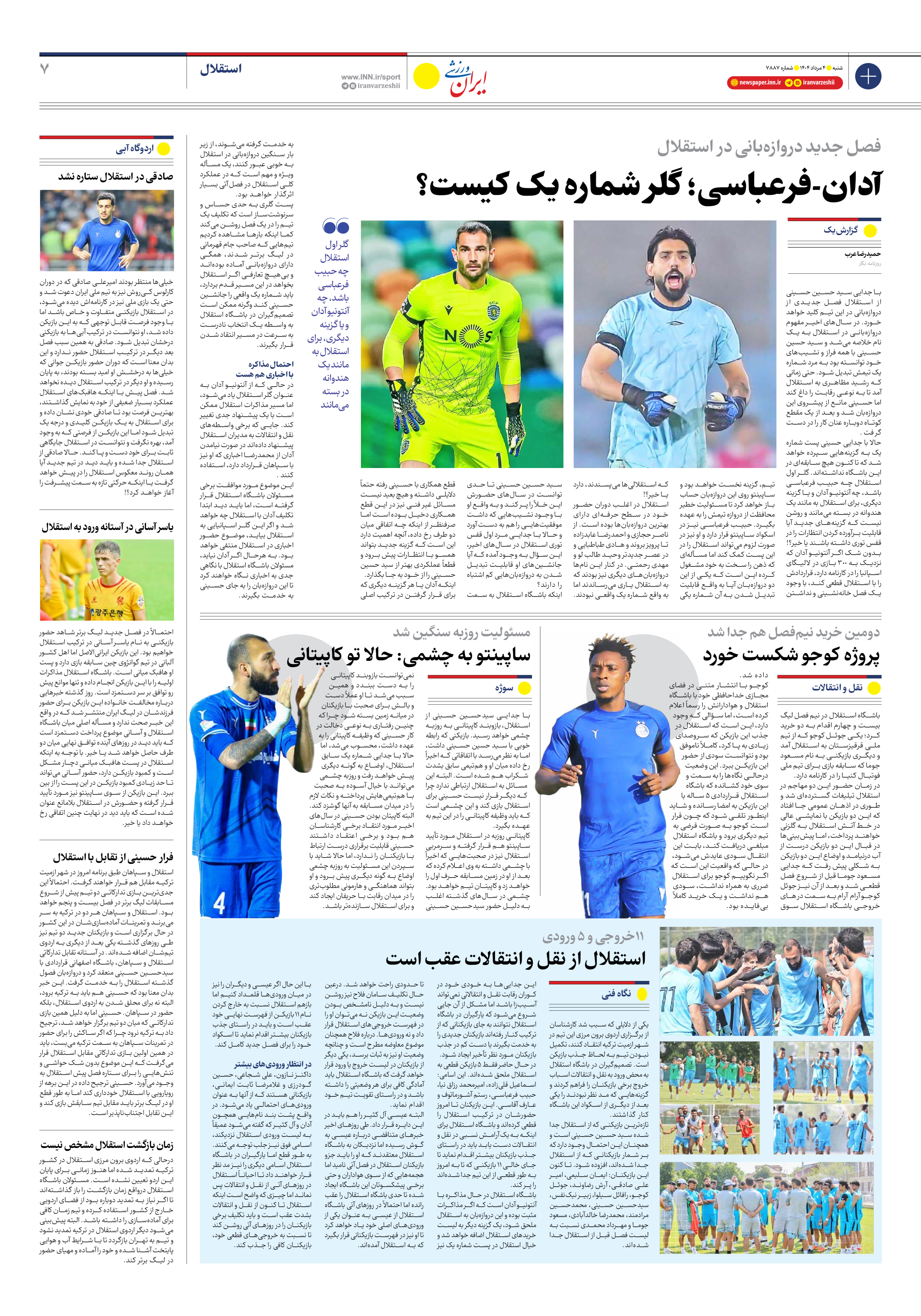 روزنامه ایران ورزشی - شماره هفت هزار و هشتصد و هشتاد و هفت - ۰۴ مرداد ۱۴۰۴ - صفحه ۷