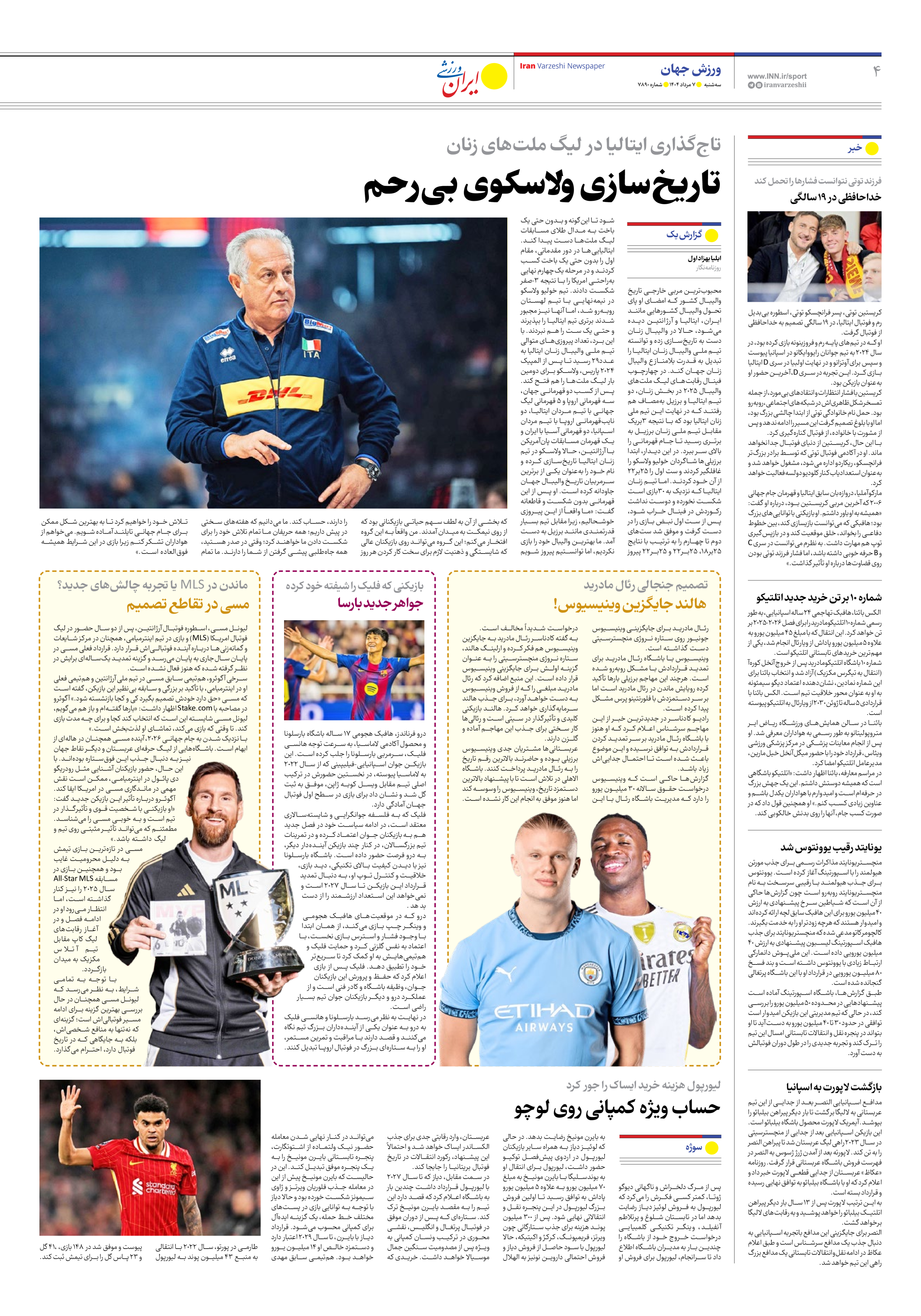 روزنامه ایران ورزشی - شماره هفت هزار و هشتصد و نود - ۰۷ مرداد ۱۴۰۴ - صفحه ۴