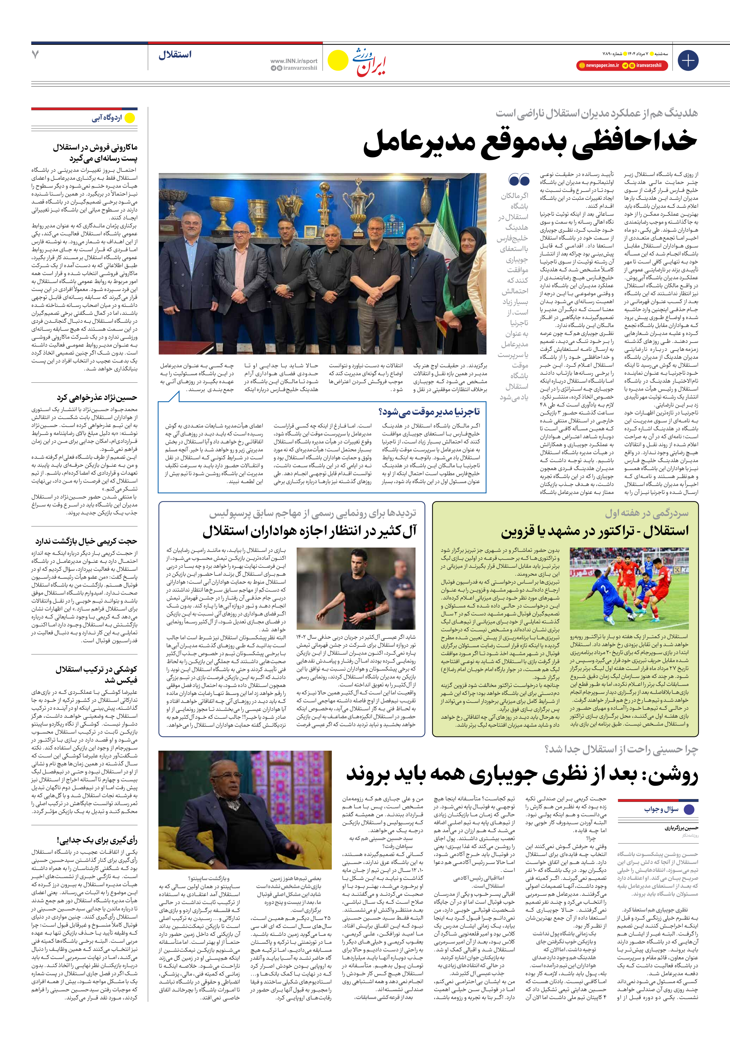 روزنامه ایران ورزشی - شماره هفت هزار و هشتصد و نود - ۰۷ مرداد ۱۴۰۴ - صفحه ۷