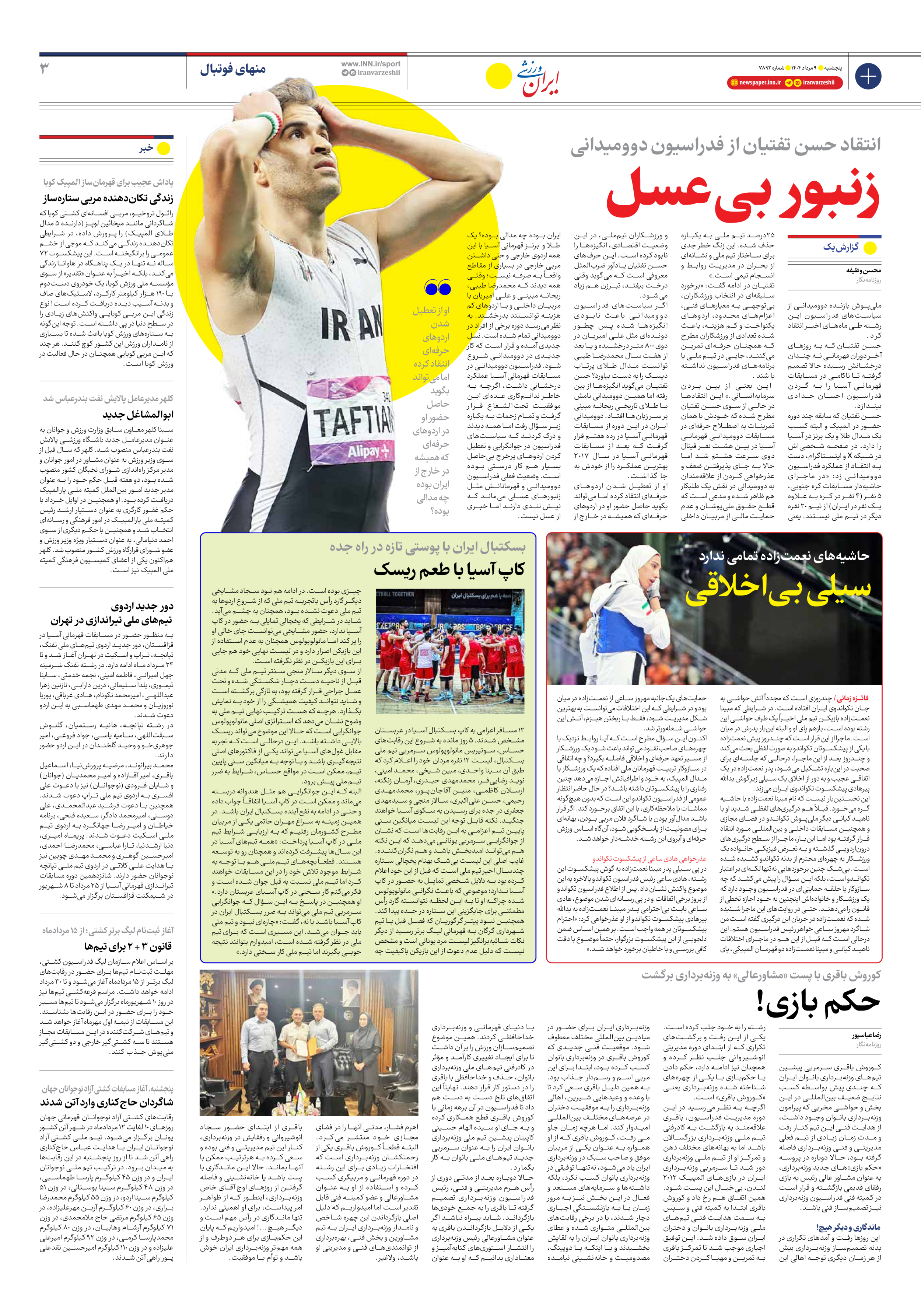 شماره هفت هزار و هشتصد و نود و دو - ۰۹ مرداد ۱۴۰۴