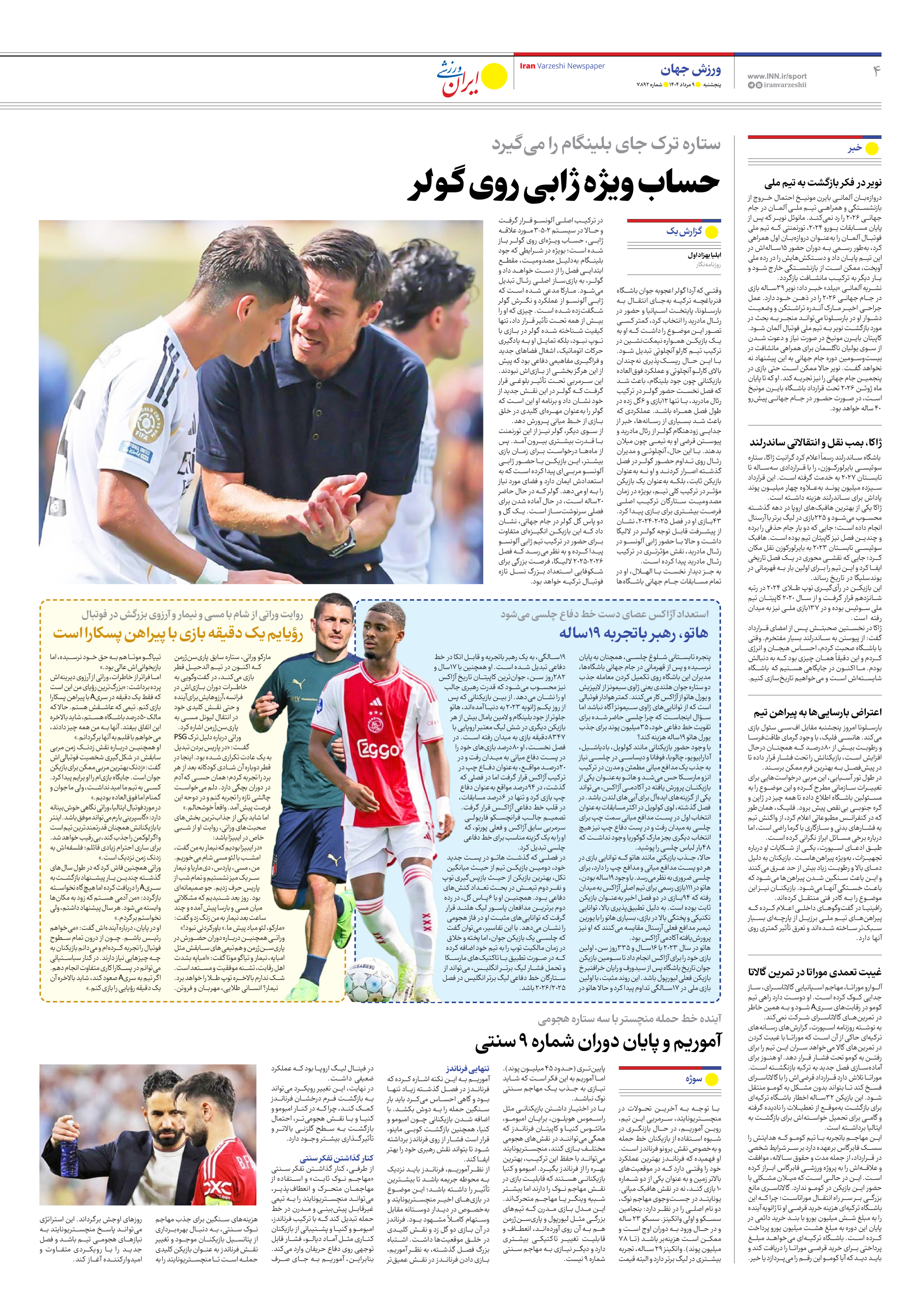 روزنامه ایران ورزشی - شماره هفت هزار و هشتصد و نود و دو - ۰۹ مرداد ۱۴۰۴ - صفحه ۴
