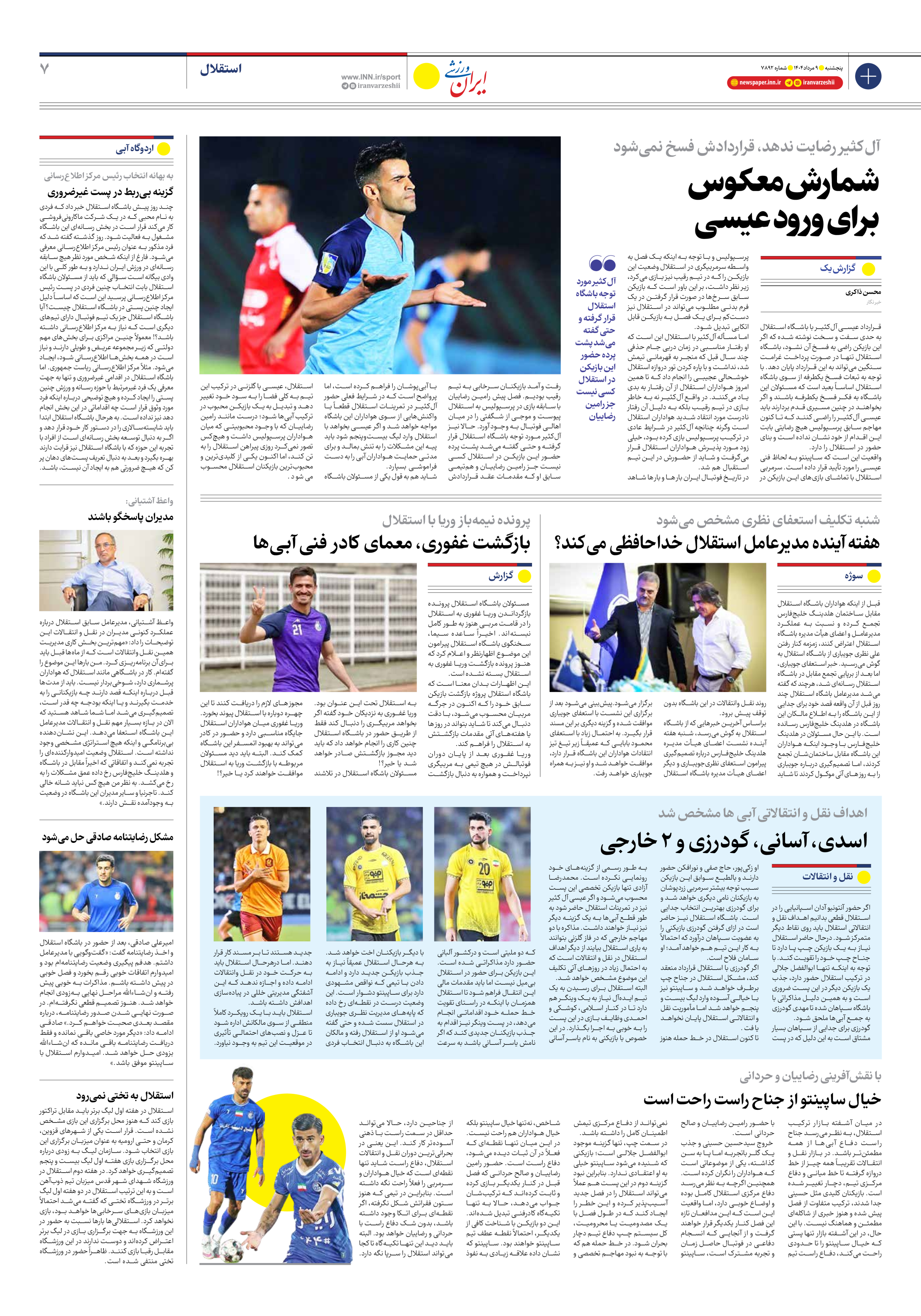 روزنامه ایران ورزشی - شماره هفت هزار و هشتصد و نود و دو - ۰۹ مرداد ۱۴۰۴ - صفحه ۷
