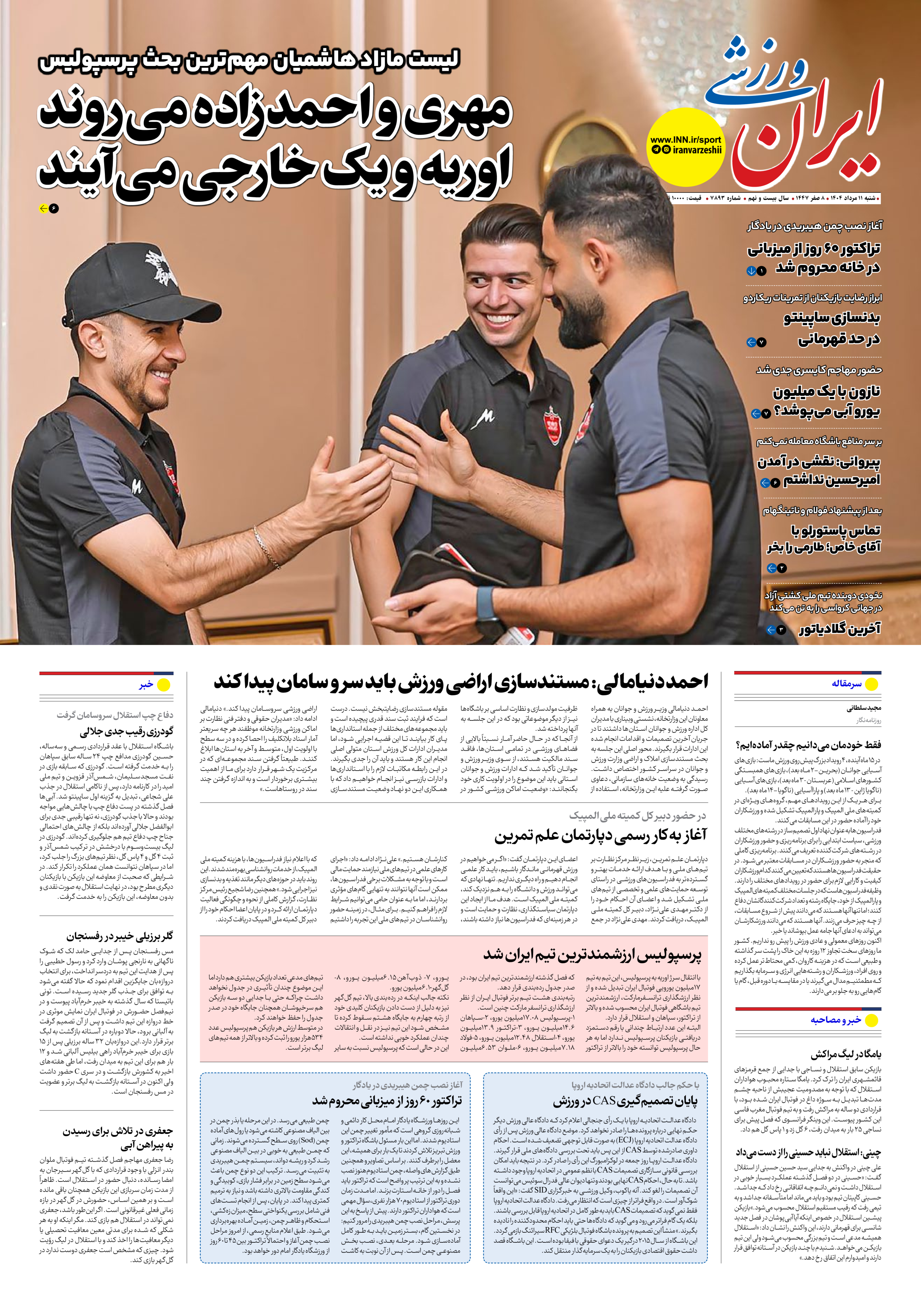 روزنامه ایران ورزشی - شماره هفت هزار و هشتصد و نود و سه - ۱۱ مرداد ۱۴۰۴