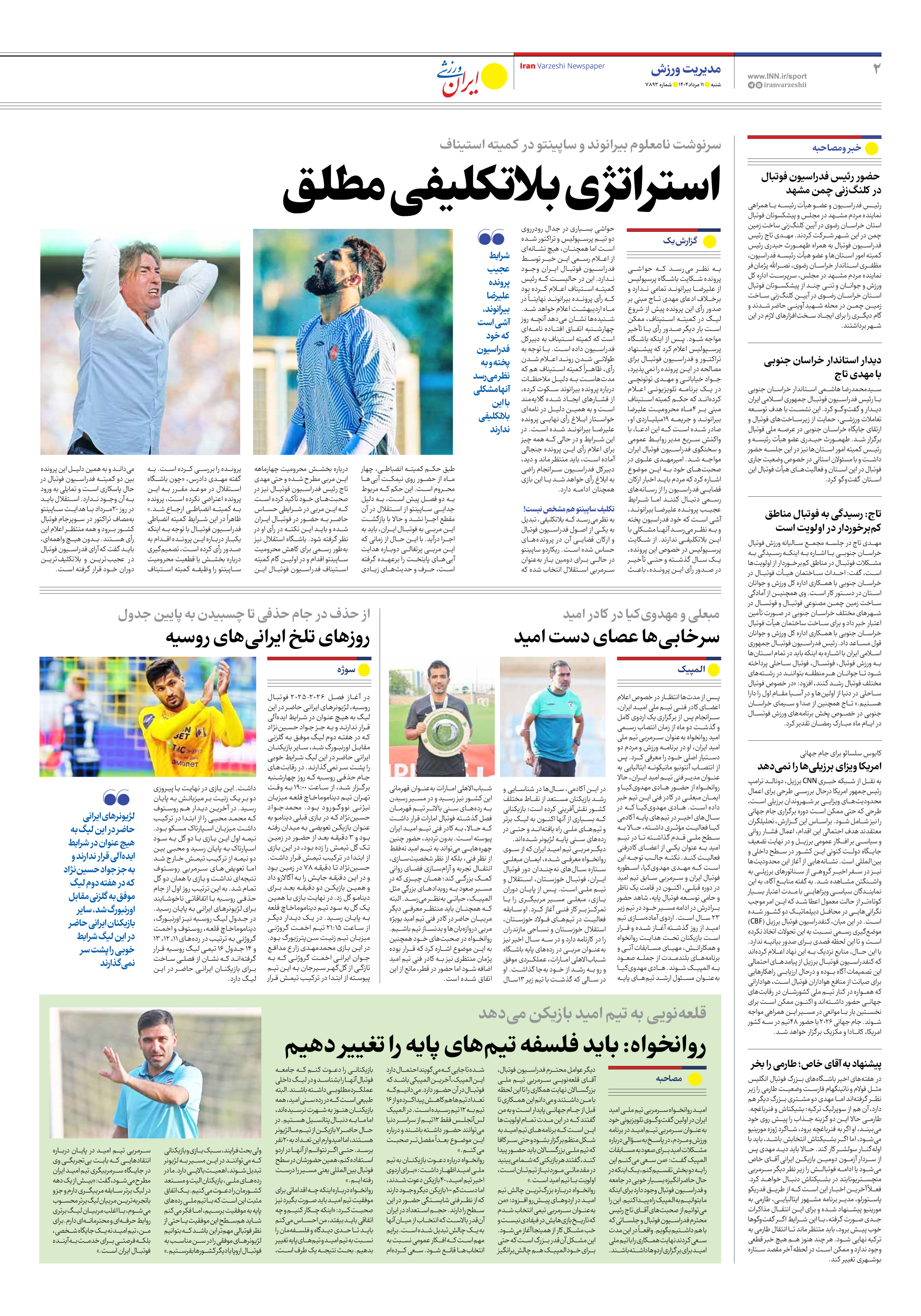 روزنامه ایران ورزشی - شماره هفت هزار و هشتصد و نود و سه - ۱۱ مرداد ۱۴۰۴ - صفحه ۲