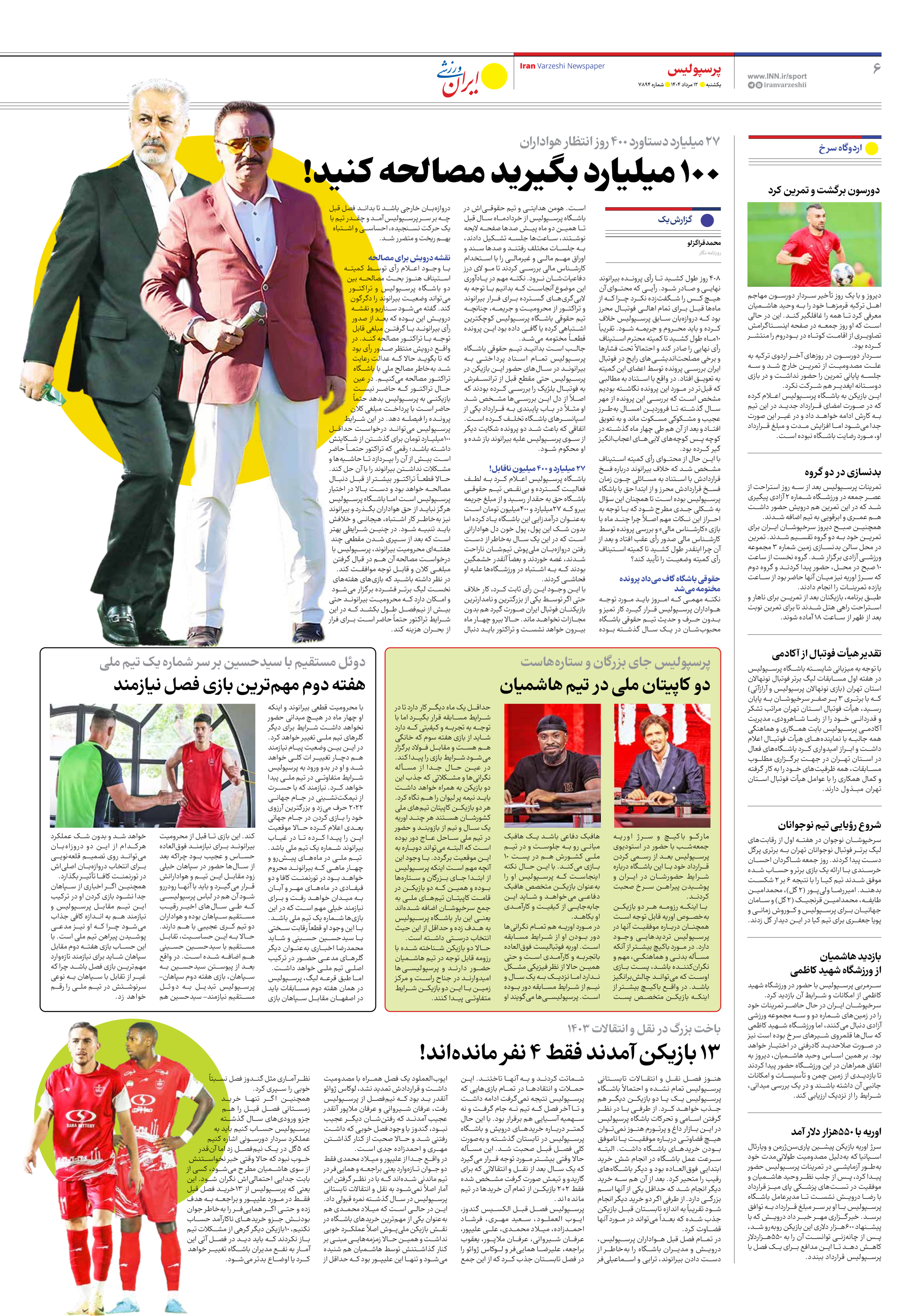 روزنامه ایران ورزشی - شماره هفت هزار و هشتصد و نود و چهار - ۱۲ مرداد ۱۴۰۴ - صفحه ۶