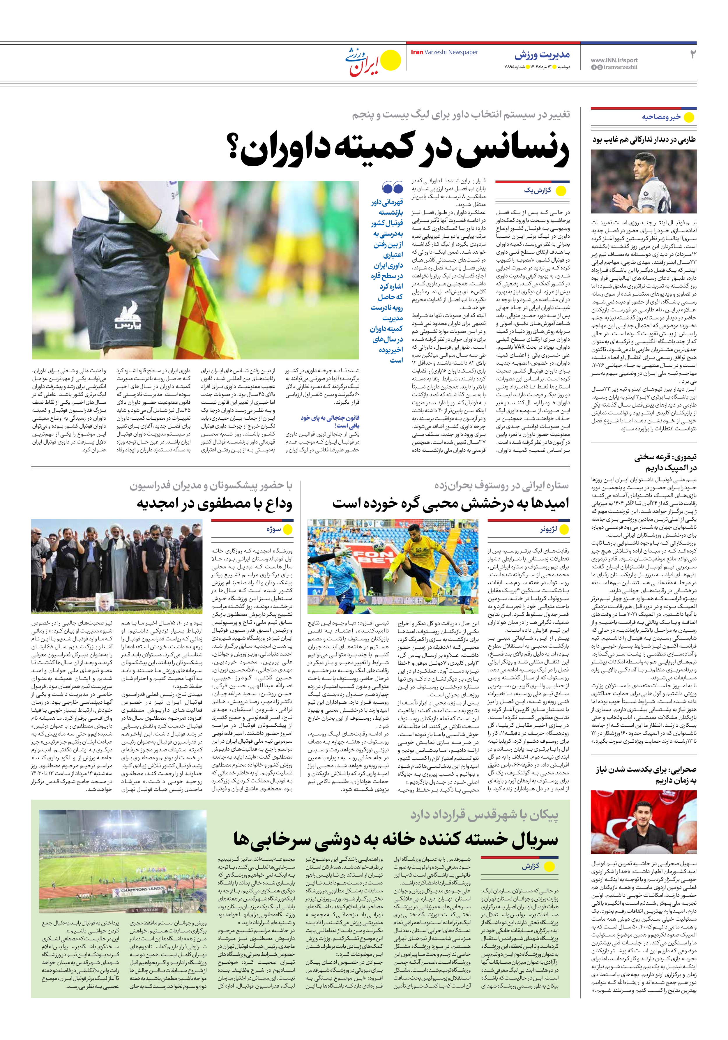 روزنامه ایران ورزشی - شماره هفت هزار و هشتصد و نود و پنج - ۱۳ مرداد ۱۴۰۴ - صفحه ۲