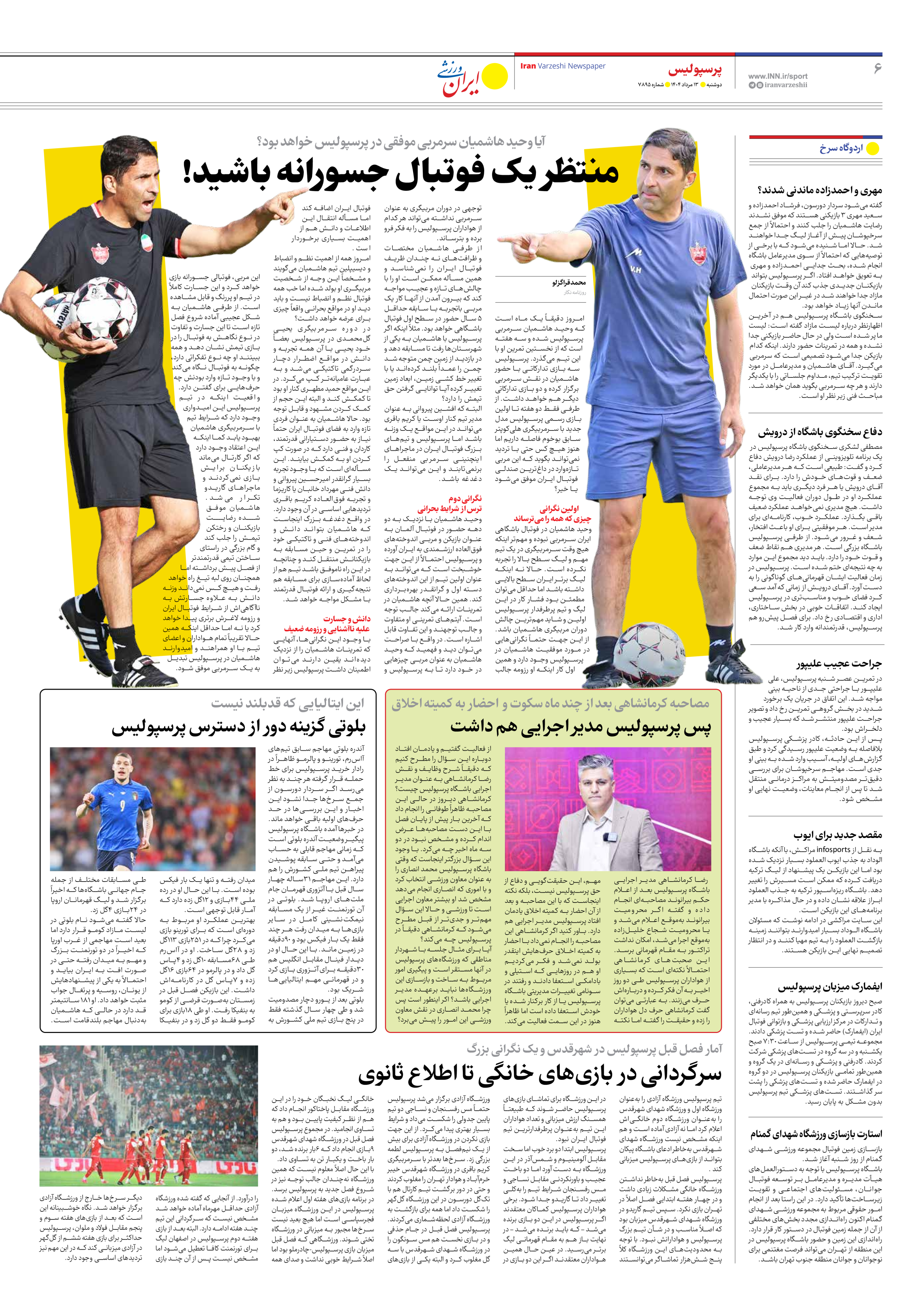 روزنامه ایران ورزشی - شماره هفت هزار و هشتصد و نود و پنج - ۱۳ مرداد ۱۴۰۴ - صفحه ۶