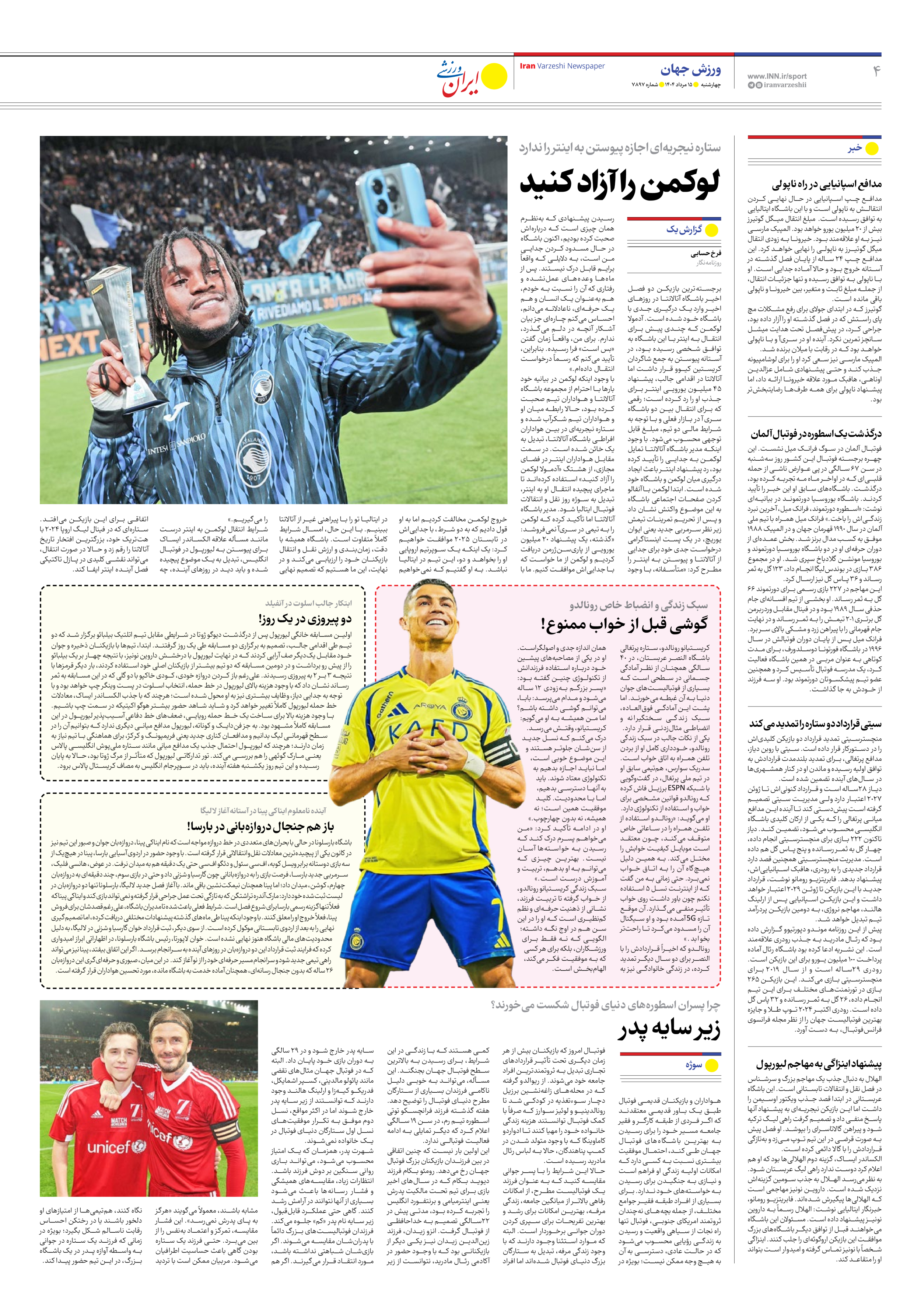 روزنامه ایران ورزشی - شماره هفت هزار و هشتصد و نود و هفت - ۱۵ مرداد ۱۴۰۴ - صفحه ۴