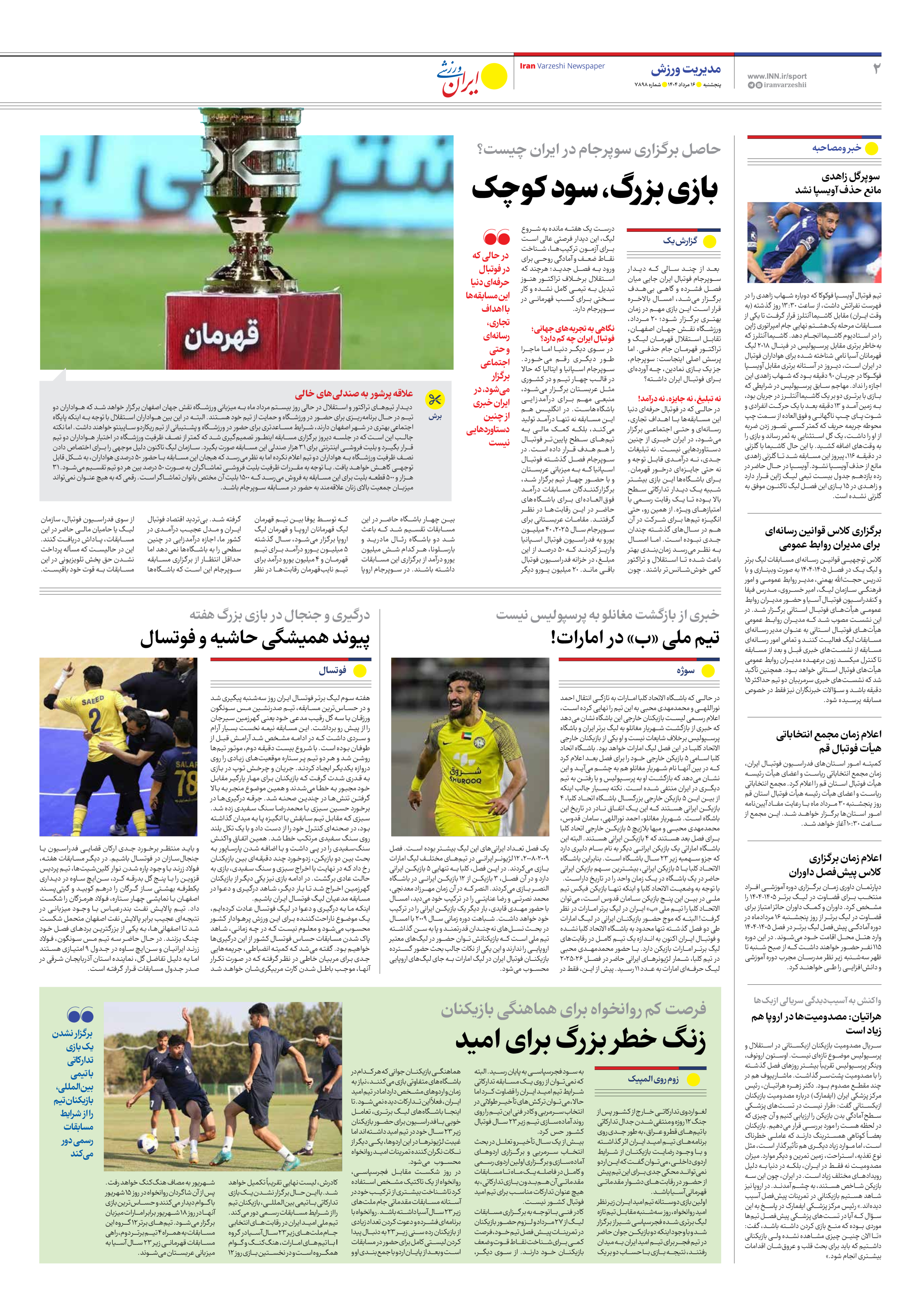 روزنامه ایران ورزشی - شماره هفت هزار و هشتصد و نود و هشت - ۱۶ مرداد ۱۴۰۴ - صفحه ۲