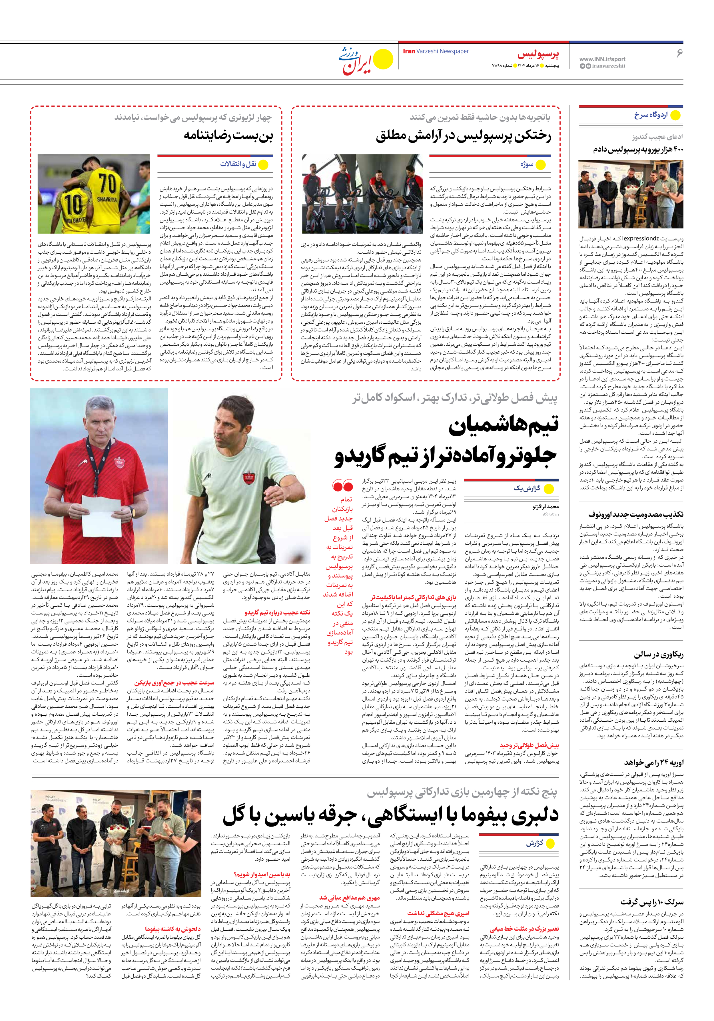 روزنامه ایران ورزشی - شماره هفت هزار و هشتصد و نود و هشت - ۱۶ مرداد ۱۴۰۴ - صفحه ۶