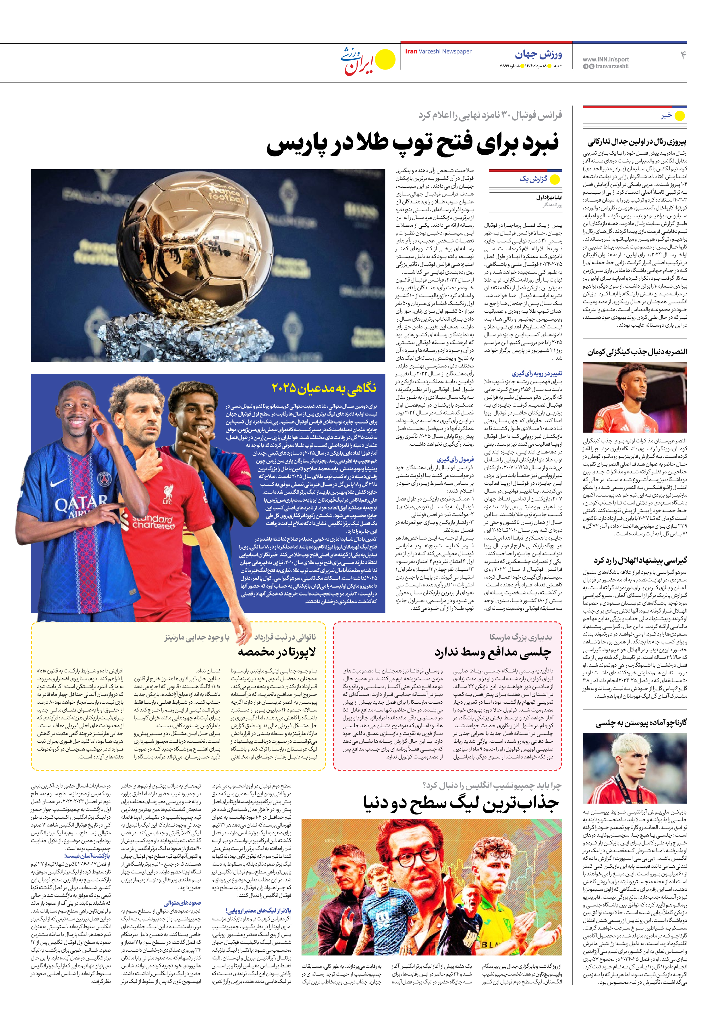 روزنامه ایران ورزشی - شماره هفت هزار و هشتصد و نود و نه - ۱۸ مرداد ۱۴۰۴ - صفحه ۴